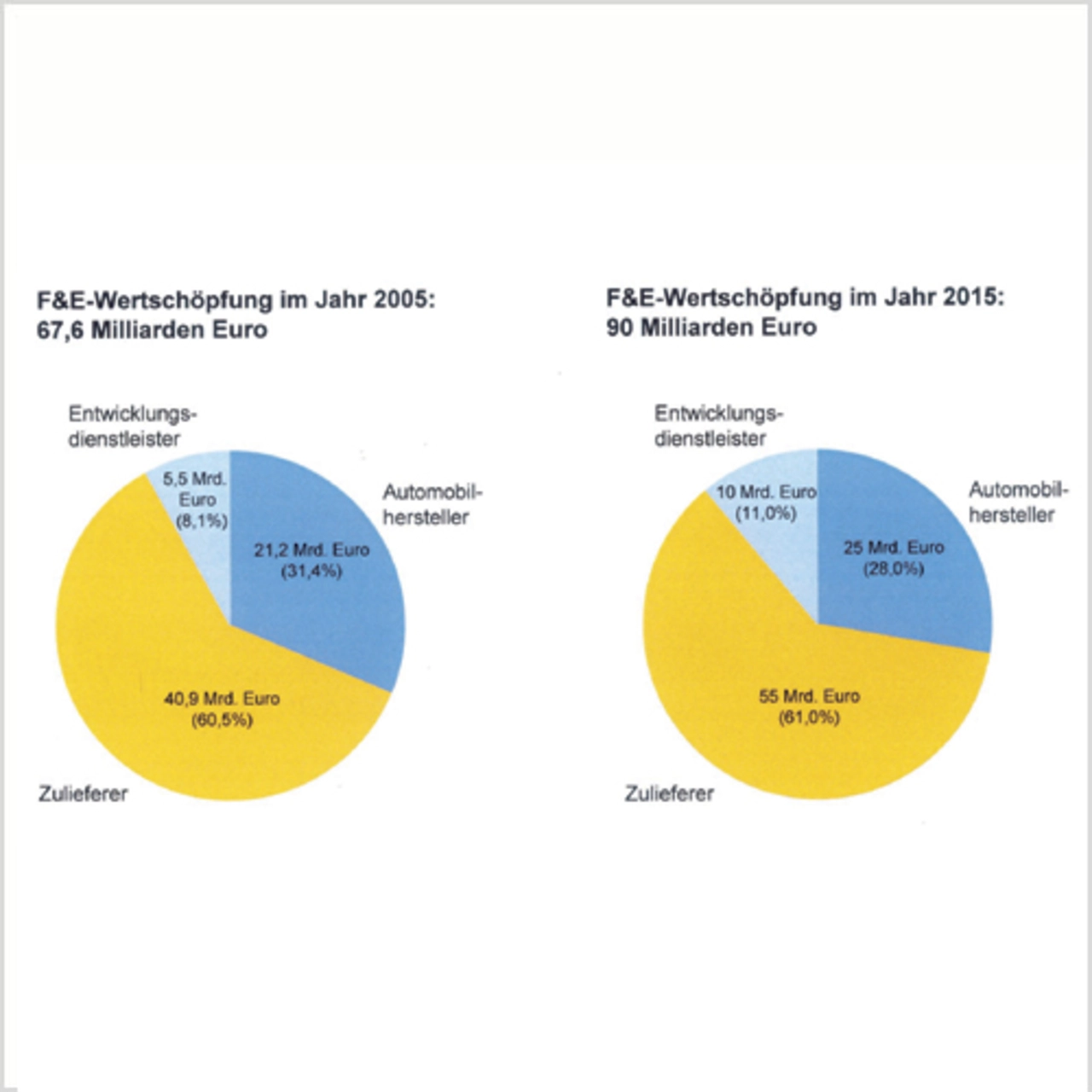 Die erfolgreichsten Technologien mit einem Wachstum von 8 Prozent und mehr werden Software, Halbleiter, Displays und Antriebssysteme sein. Elektrik und Elektronik bleiben auch weiterhin die wichtigsten Treiber für 60 Prozent aller Innovationen. Ihr jährliches Wachstum liegt bei 6 Prozent. Um Kosten zu optimieren, wird es klare Trends zur Integration und Zusammenlegung verschiedener Funktionen sowie zur weiteren Standardisierung geben. Durch eine intelligente Verknüpfung bereits vorhandener Komponenten und Module wird sich der Schwerpunkt von Einzelapplikationen hin zu Systemapplikationen verlagern. Insgesamt sind, so die Studie, Zulieferer und Engineering-Dienstleister die Gewinner dieser Entwicklung (Bild 4). Sie können ihre F&E-Leistung deutlich steigern – von 40,9 Mrd. Euro im Jahr 2005 auf 55 Mrd. Euro im Jahr 2015. Zudem dürfte ihre Innovationsstärke durch den weiteren Konzentrationsprozess zunehmen. Außerdem müssten sich Zulieferer noch stärker komplementäres Know-how und Kompetenzen über F&E-Partnerschaften erschließen. Auf diese Weise ließen sich Kosten senken und gleichzeitig die Innovationsqualität steigern.