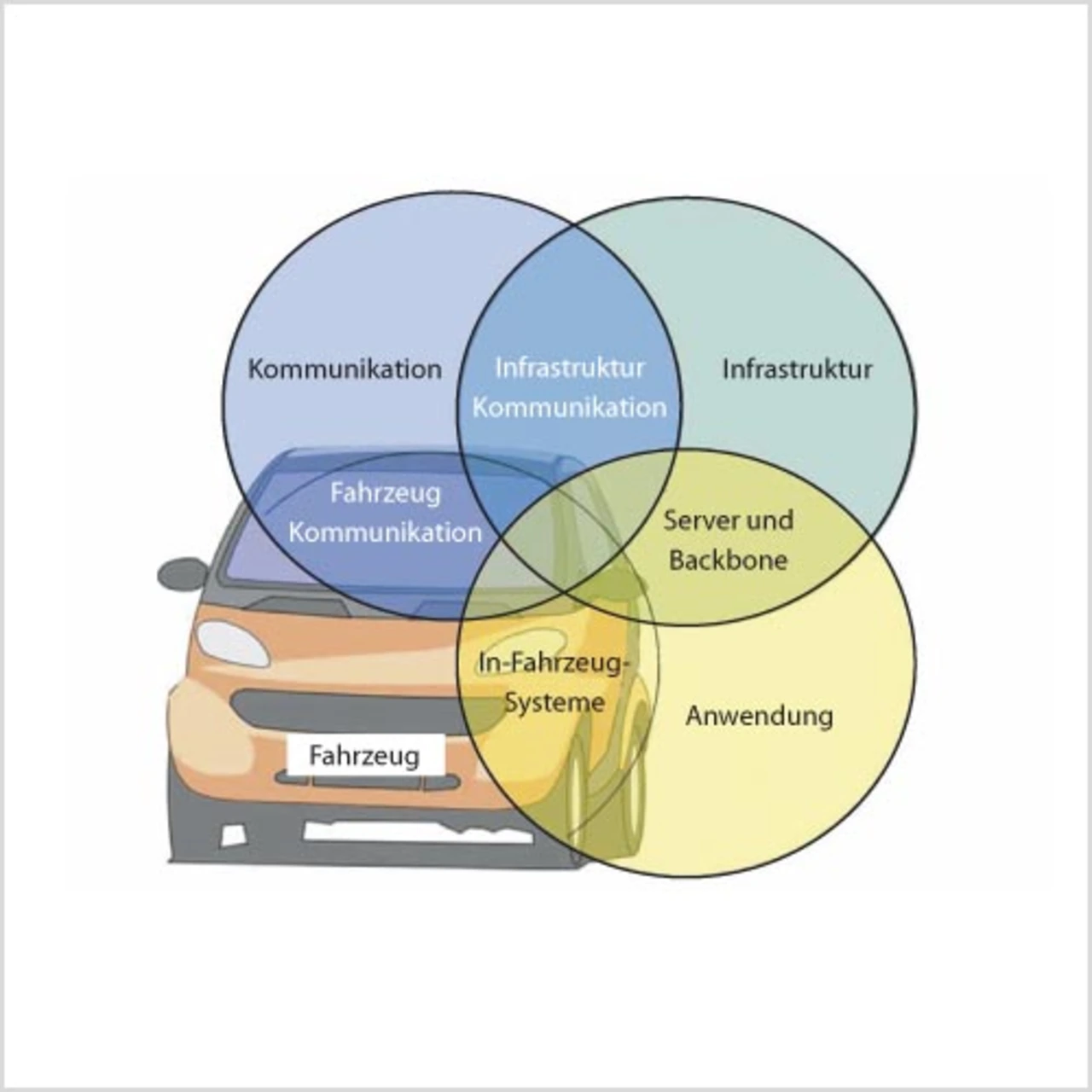 Zur besseren Systematisierung kann man die vier Bereiche Fahrzeug, Anwendung, Kommunikation und Infrastruktur identifizieren (Bild 6). Diese definieren die Anforderungen an aktuelle und zukünftige Kommunikations-Szenarien und sind damit Schlüssel für die Umsetzung. Das Fahrzeug selber ist damit nur noch eine Komponente des Netzwerks, was alleine schon durch die zentralistische Sicht der OEMs problematisch ist.