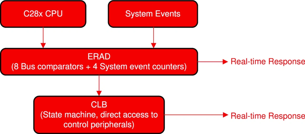 Für die Fehlersuche und die Überwachung und Erstellung von Profilen für kritische CPU-Busse und Geräteereignisse in einem C2000-Echtzeitsystem wird »Embedded Real-Time Analysis & Diagnostics« (ERAD) verwendet, das nicht in das System eingreift. Das Hardware-Modul bietet erweiterte Buskomparatoren und Systemereigniszähler, die innerhalb der MCU-Busarchitektur angeordnet sind (Bild 4).
