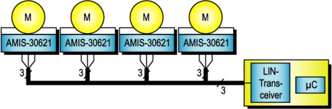 Mechatronik-Module ermöglichen die Verlagerung der heute erforderlichen Intelligenz in Richtung Motor. Sie enthalten Schnittstellen, Steuerungs- und Treiberfunktionen als auch den Motor selbst – und das in einer abgeschlossenen Einheit (Bild 1). Damit reduziert sich der Bauteilaufwand des Controller-Boards auf den Prozessor und die Busschnittstelle, wie z.B. den dreiadrigen LIN-Bus (Local Interconnect Network). LIN wird von einer Vielzahl von Automotive-Herstellern verwendet und verringert den Verdrahtungsaufwand als auch die Signalverteilung in Fahrzeugen. Als Verbindungslösung nach Industriestandard unterstützt LIN die Integration einer Vielzahl von Mechatronik-Modulen in Fahrzeuge, indem eine Standard-LIN-Schnittstelle als auch die Steuerungs- und Treiberfunktionen innerhalb des Moduls untergebracht sind.