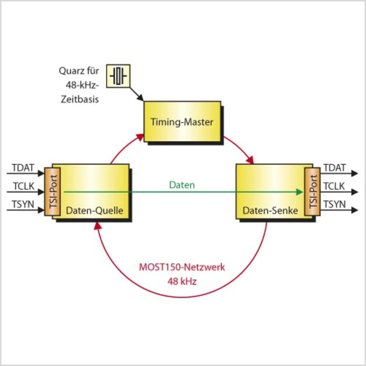 Damit können Video-Bausteine direkt an den MOST150 INIC angeschlossen werden. Eine zusätzliche Hardware (Glue-Logic) ist nicht erforderlich. So kann beispielsweise in einem digitalen Fernsehempfänger der DVB-T-Tuner über die TSI-Schnittstelle direkt an einen MOST-150 INIC angeschlossen werden.
