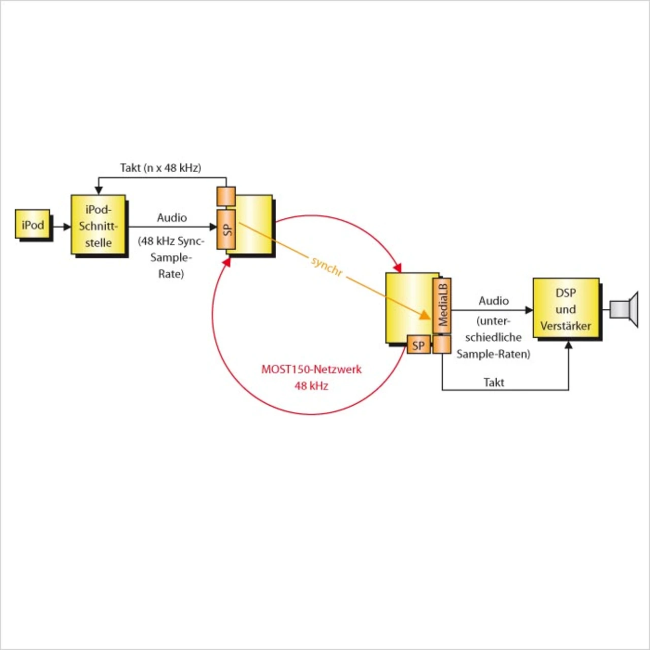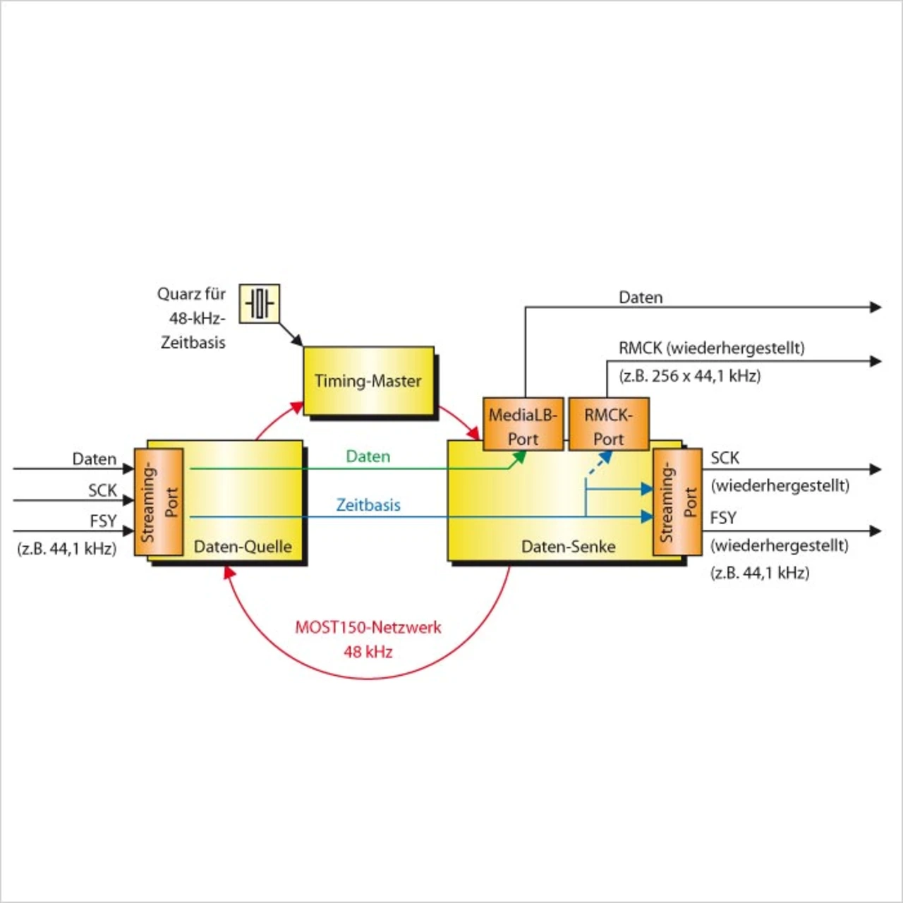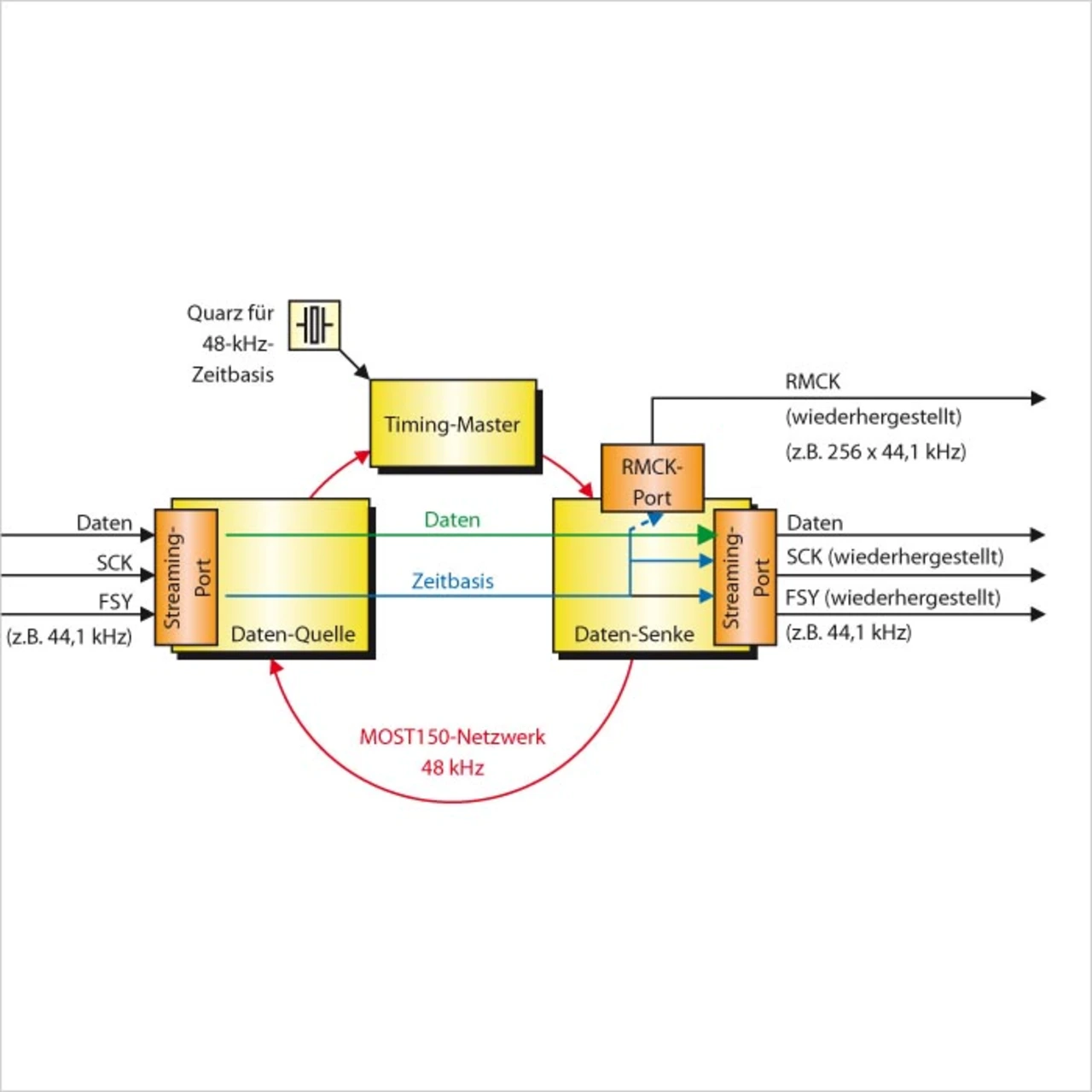 Transparente Übertragung von Audio-Daten, die nicht auf die Zeitbasis von MOST synchronisiert sind, oder auch von MOST-fremden Taktsignalen.