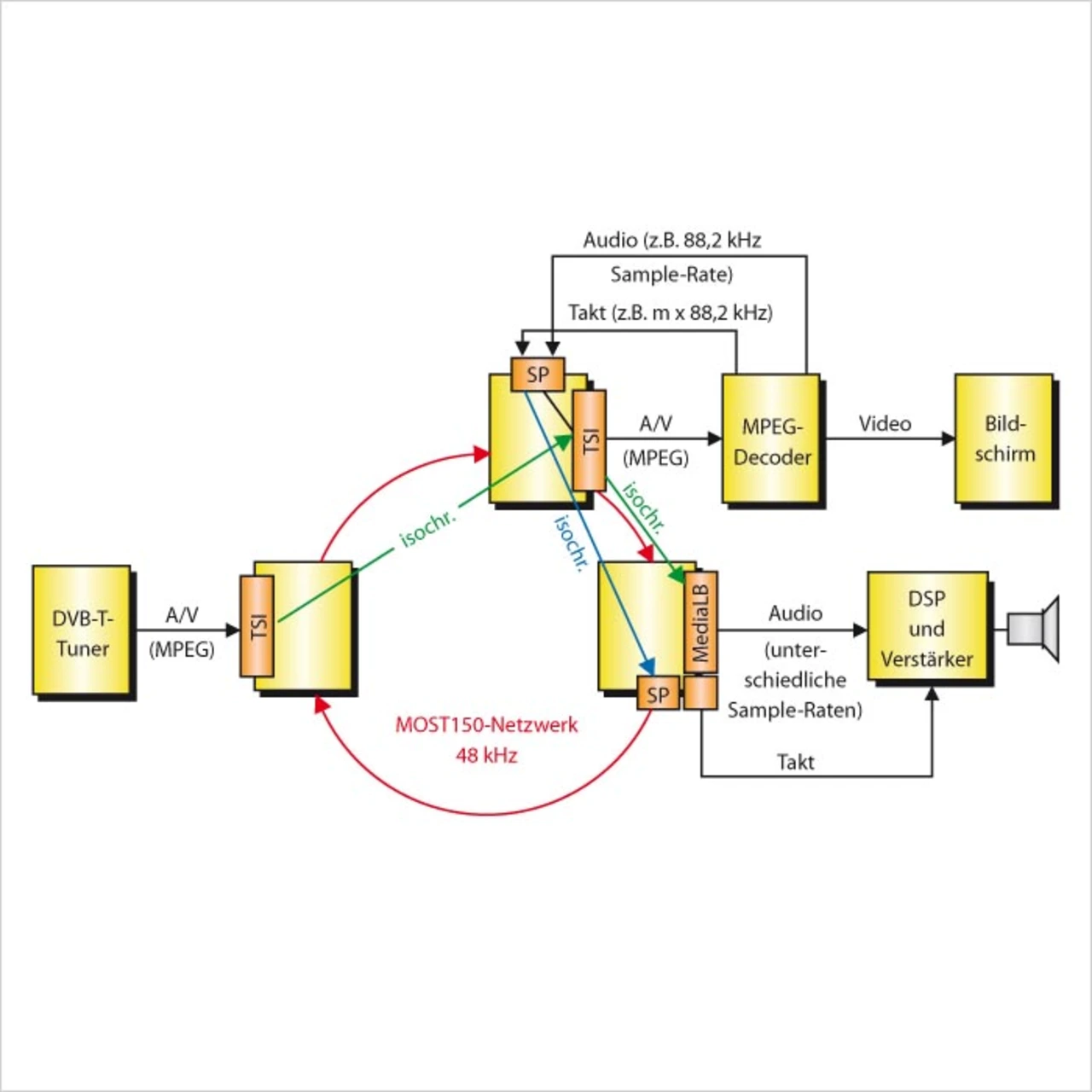 Automatische Erkennung von optischem S/PDIF- bzw. MOST-Signal für Heim-Anwendungen. Die unidirektionale Punkt-zu-Punkt-Verbindung S/PDIF wird damit netzwerkfähig.