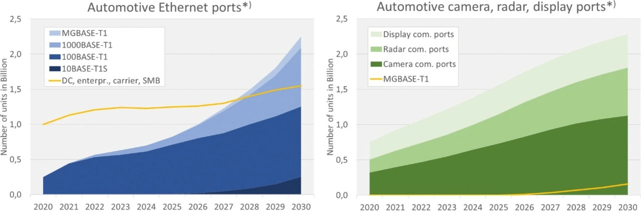 Wie in Bild 1 zu sehen ist, rechtfertigt die Größe des Marktes ein großes Ökosystem. Der potenzielle Markt für Kamera-, Radar- und Display-Kommunikationschips ist größer als der gesamte Automotive-Ethernet-Markt oder der gesamte Ethernet-Markt außerhalb der Automobilindustrie! Kommunikationsstandards bilden die Grundlage für innovative Veränderungen. Was heute vielleicht »nice to have« erscheint, wird morgen der limitierende Faktor für Innovationen sein, wenn es dann nicht da ist: ein Standard für die Hochgeschwindigkeitskommunikation.