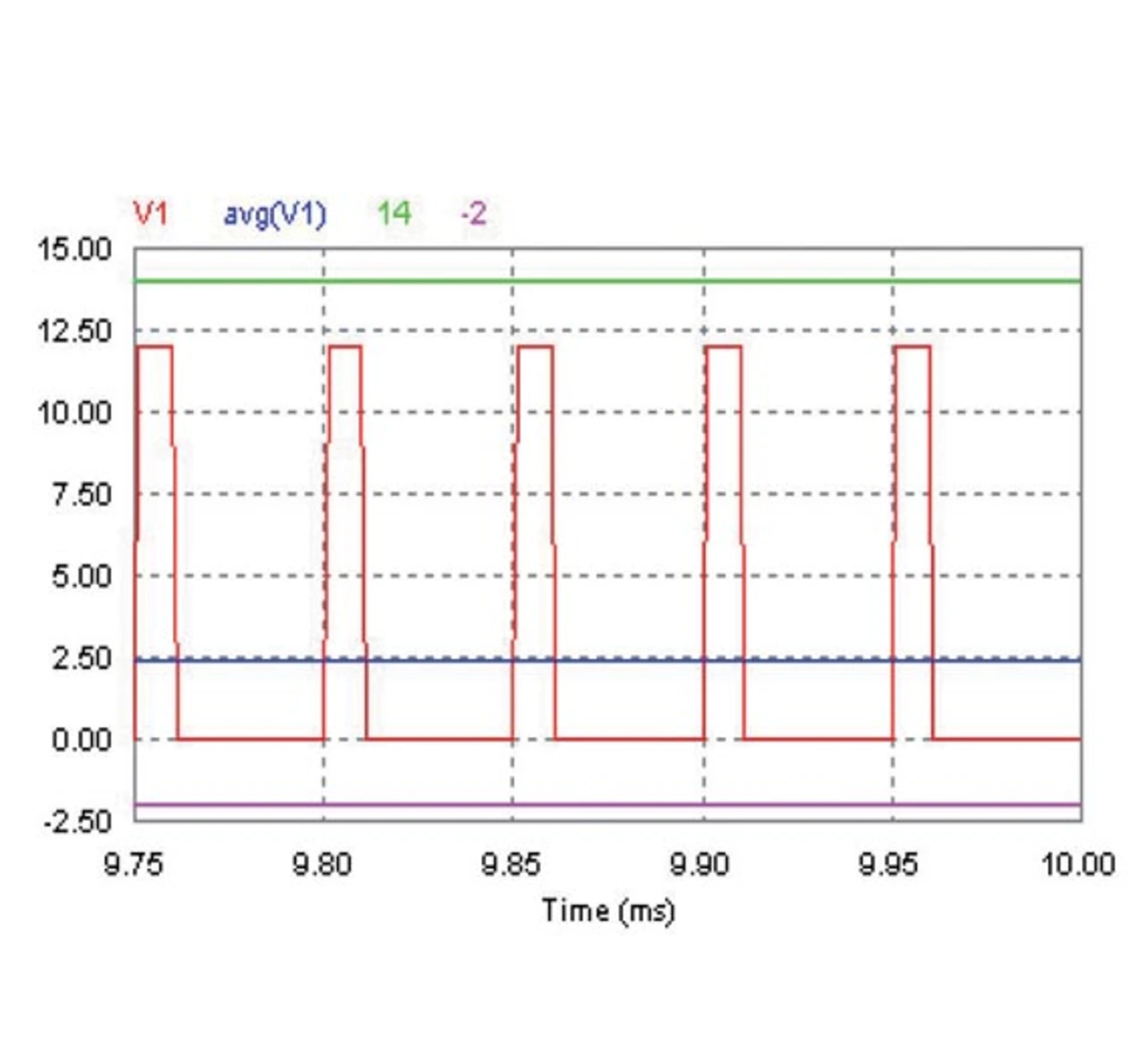 Der Einsatz der Pulsweitenmodulation (PWM) bei der Regelung von Lüftermotoren erlaubt es, die effektive Spannung und damit den Strom des Motors stufenlos zu regeln. Dies geschieht ohne die hohe Verlustleistung der anderen Methoden. Bei der PWM-Methode wird ein Schalter mit einer hohen Frequenz von etwa 20 kHz ein- und ausgeschaltet. Das Verhältnis der Zeit im ausgeschalteten Zustand und der Zeit im eingeschalteten Zustand, das Puls-Pause-Verhältnis, bestimmt hierbei die effektive Spannung, die sich über dem Motor aufbaut. Diese ist relativ konstant, da die Zeitkonstante des Motors sehr viel größer ist als die Schaltperiode. Somit sieht der Motor die effektive Gleichspannung und nicht die PWM-Spannung (Bild 1), was zu einer deutlichen Reduzierung der Verlustleistung führt.