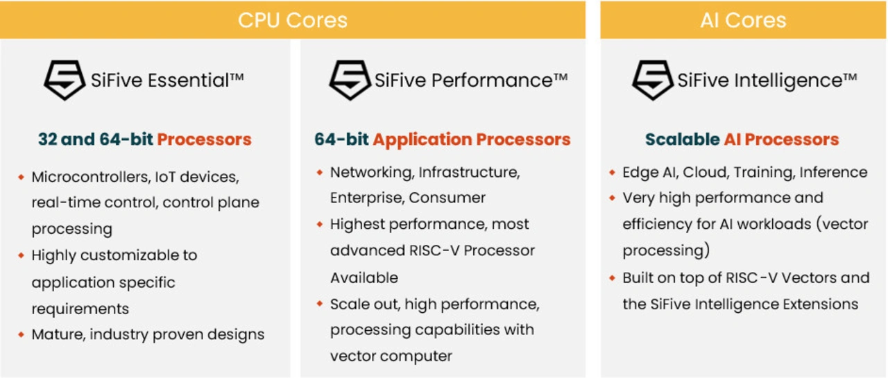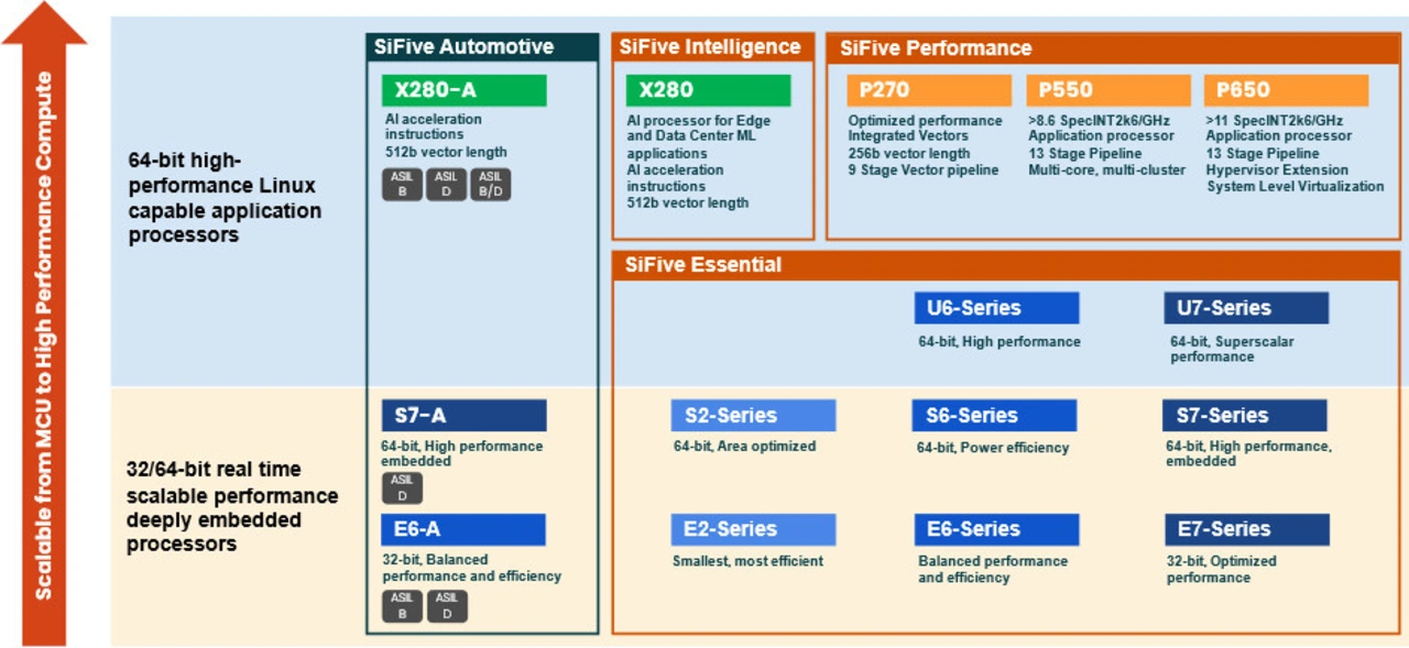 Von Infotainment, über Konnektivität, bis hin zu ADAS – die SiFive-Automotive-CPU-Kerne gibt es in verschiedenen Leistungsklassen: Von Effizienz bis High-Performance-Cores.