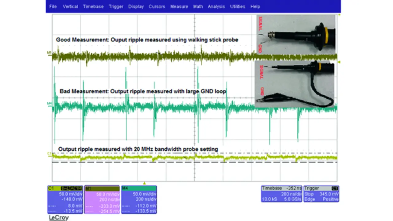 Beim Prüfen von Schaltreglern mit der richtigen Messanordnung zu arbeiten, ist sehr wichtig, denn fehlerhafte Messungen können zu falschen Schlussfolgerungen und einem schlechten Design führen. Notwendig sind auch Messungen bei verschiedenen Umgebungstemperaturen, weil die Leistungsfähigkeit von Schaltreglersystemen über die Temperatur beträchtlich variieren kann.