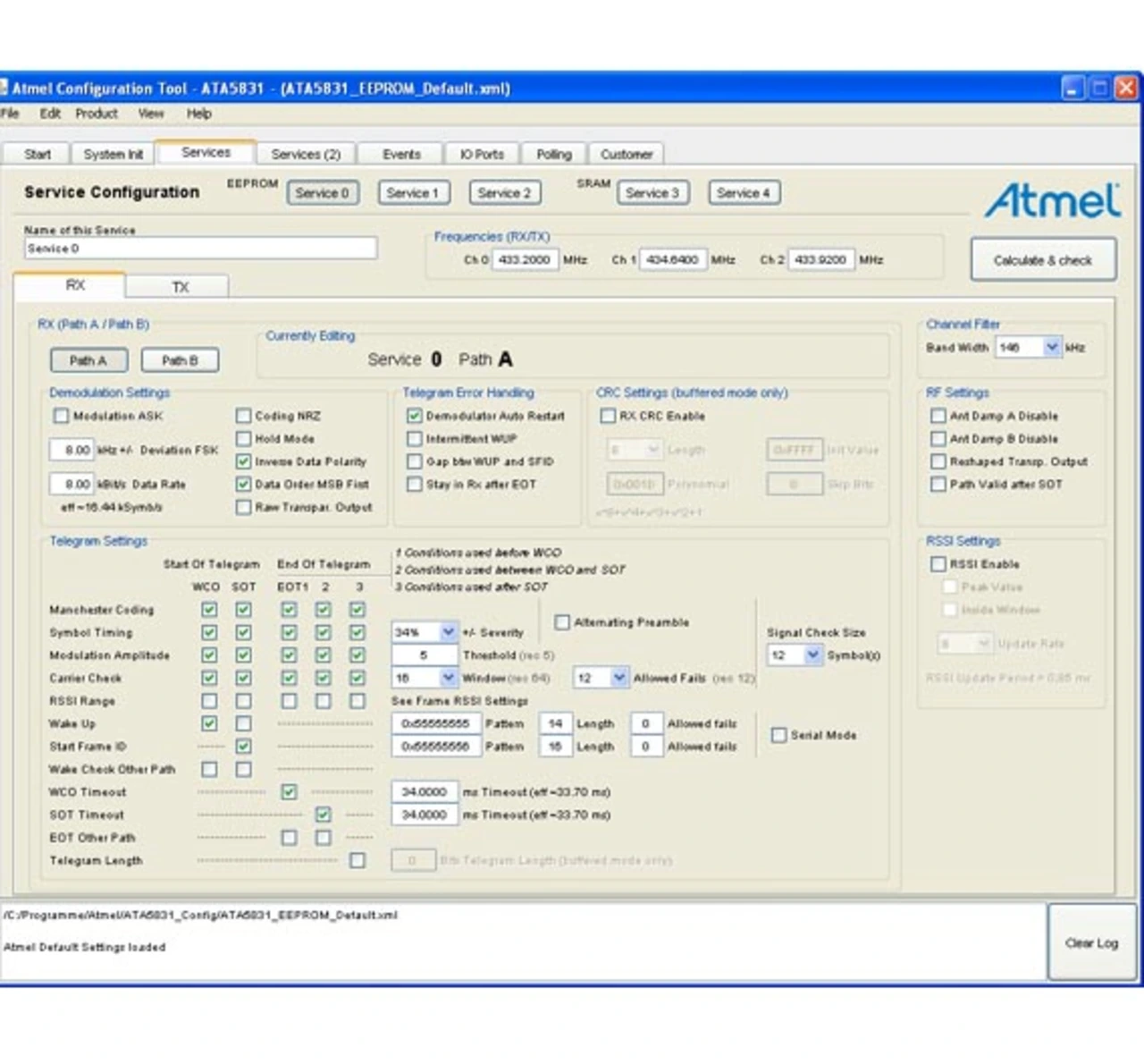 Die neuen HF-Schaltkreise, die in verschiedenen Frequenzbändern senden und empfangen können, sowie die diversen HF-Telegramme, die für Kfz-Funksteuerungen zum Einsatz kommen, erfordern eine detaillierte Kenntnis der integrierten Hardware. Diese muss über diverse Register auf die gewünschte Funktion eingestellt werden. Die modernen HF-Transceiver/-Empfänger hingegen enthalten ein ROM mit einer HF-Bibliothek, in der alle Funktionen enthalten sind, um den Transceiver in die verschiedenen Betriebsmodi zu schalten. So braucht der Anwender sich nicht selbst tief in die Details der Transmitter-Hardware einzuarbeiten und eigene Sende- und Empfangsroutinen zu entwickeln. Die Transceiver und Empfänger können alle bekannten HF-Telegramme senden, empfangen und lassen sich auch an verschiedene Telegramme anpassen. Die Einstellungen der HF-Parameter – wie die HF-Frequenz, Baud-Rate, Sendeleistung oder die Empfängerparameter – werden über eine Java-Software definiert. Diese Konfigurationsdaten lassen sich dann im EEPROM des Transceivers ablegen und beim Aktivieren des ICs automatisch durch eine Funktion der ROM-Bibliothek laden. Bild 3 zeigt die Java-basierte grafische Benutzeroberfläche (GUI).
