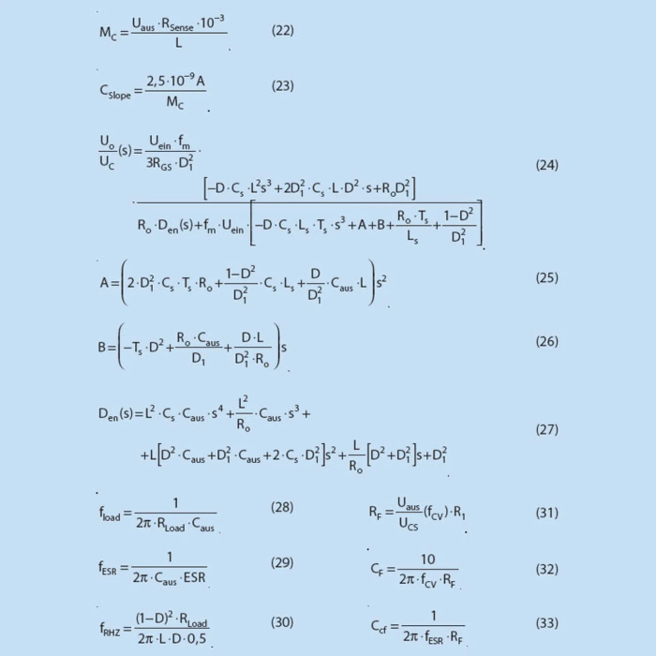 Da eine Nullstelle auf der rechten Halbebene ist, muss die Transitfrequenz fCV weit vor der Nullstelle liegen, also z.B. 1/6 fRHZ betragen. Dies wird mit Rf, Cf und Ccf (R11, C19 und C20 in Bild 2) festgelegt. Mit der Transitfrequenz können Rf, Cf und Ccf nach den Formeln 31, 32 und 33 berechnet werden, wobei fCV kleiner als fRHZ/6 oder fLoad/6 ist.