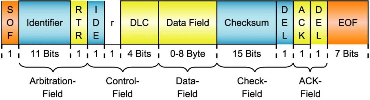 Zur Übertragung von Nutzinformationen steht das 64 bit breite Data-Field zur Verfügung, bei dem die genaue Anzahl der Nutzbytes mittels DLC (Data Length Code) angegeben wird. Dem Data-Field folgt die CRC-Sequence (Cyclic Redundancy Check). Anhand aller zu übertragenden Bits, eines Generatorpolynoms und eines definierten Algorithmus generiert der Sender die CRC-Sequence. Unabhängig von der Nachrichtenfilterung geschieht dasselbe empfängerseitig mit den ankommenden Bits. Es folgen der Vergleich der beiden Sequenzen und die Quittierung nach dem rezessiven CRC-Delimiter im Acknowledge-Slot (ACK-Slot). Am Ende eines Data-Fames steht nach dem rezessiven ACK-Delimiter das 7 bit lange und rezessive EOF (End of Frame).