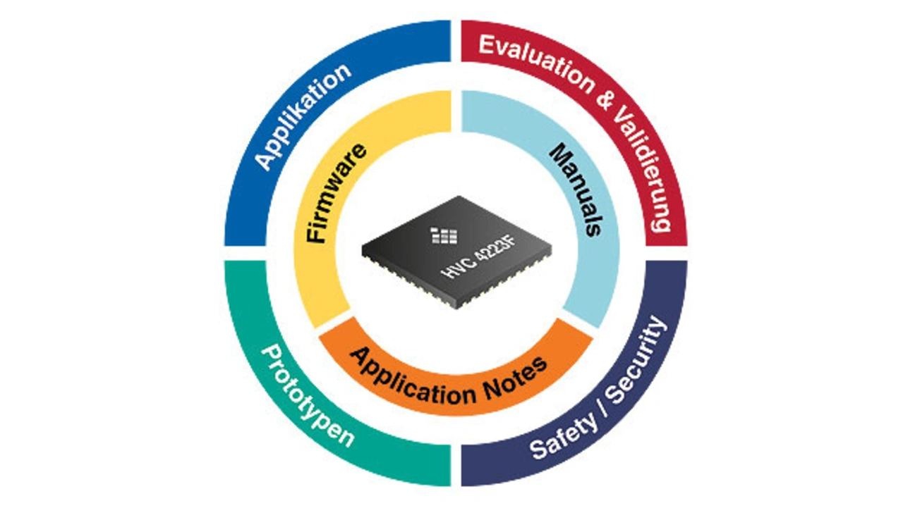 Als vollständig integrierte Lösung für smarte Aktoren ist der HVC 4223F flexibel einsetzbar und kann ohne großen Aufwand in neuen Applikationen wiederverwendet werden, sogar mit geändertem Motorkonzept. Sein Einsatz hilft Herstellen, ihre Kosten zu senken – durch weniger externe Bauelemente ebenso wie durch seine hohe Performance und Flexibilität. Offene Schnittstellen zur Applikationsschicht stellen die Flexibilität des Motor-Controllers direkt der Systemlösung des Anwenders zur Verfügung. Die Wiederverwendbarkeit grundlegender Routinen in Kombination mit der Hardware ermöglicht eine einfache Quantelung der Hardware in Bezug auf verschiedene Motorleistungsklassen bzw. -varianten.