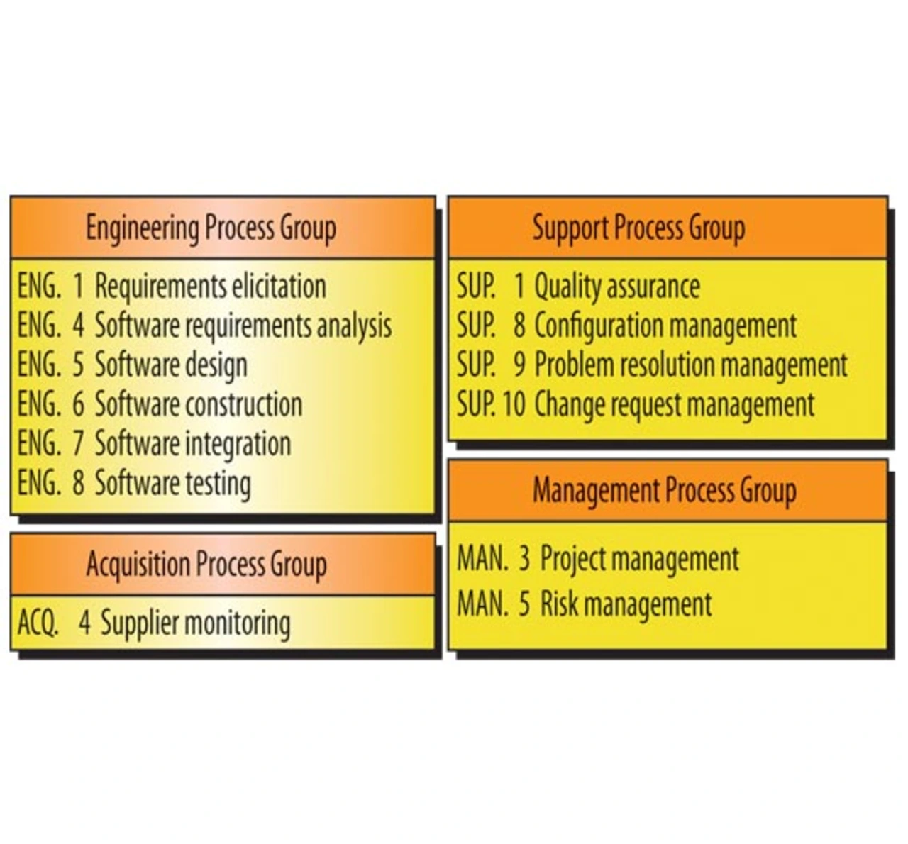 Die Aufgabe bestand für Renesas Electronics darin, einen Software-Entwicklungsprozess zu definieren, der einen nicht zu großen Overhead liefert, aber trotzdem den Anforderungen von Automotive SPICE gerecht wird. Als Basis diente der „new HIS Automotive SPICE Scope“ [4]. Nach Analyse der Entwicklungsaufgaben wurde der Umfang für den Software-Entwicklungsprozess im Software Competence Centre (SCC) festgelegt (Bild 1).