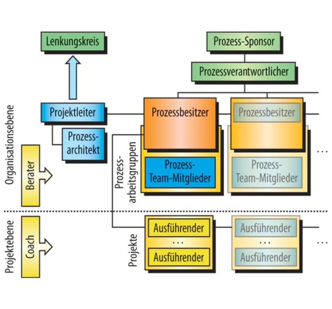 Für jeden zu verbessernden Prozess wurde ein Prozessbesitzer definiert, der für die Ausgestaltung des Prozesses verantwortlich war, sowie Prozess-Team-Mitglieder, die inhaltlich zu dem Prozess beisteuern sollten. Der Prozess-Sponsor war derjenige Abteilungsleiter des Unternehmens, der monatlich Berichte über den Fortschritt des Projektes erhielt. Aufgrund der Größe der Prozessorganisation wurden die weiteren Verantwortlichkeiten auf der Organisationsebene in Personalunion verteilt: Prozessverantwortlicher, Prozessarchitekt und Projektleiter wurden zum Process Engineer zusammengefasst. Der Process Engineer war für das Prozessdokument und die Koordination des Gesamtprojektes verantwortlich.