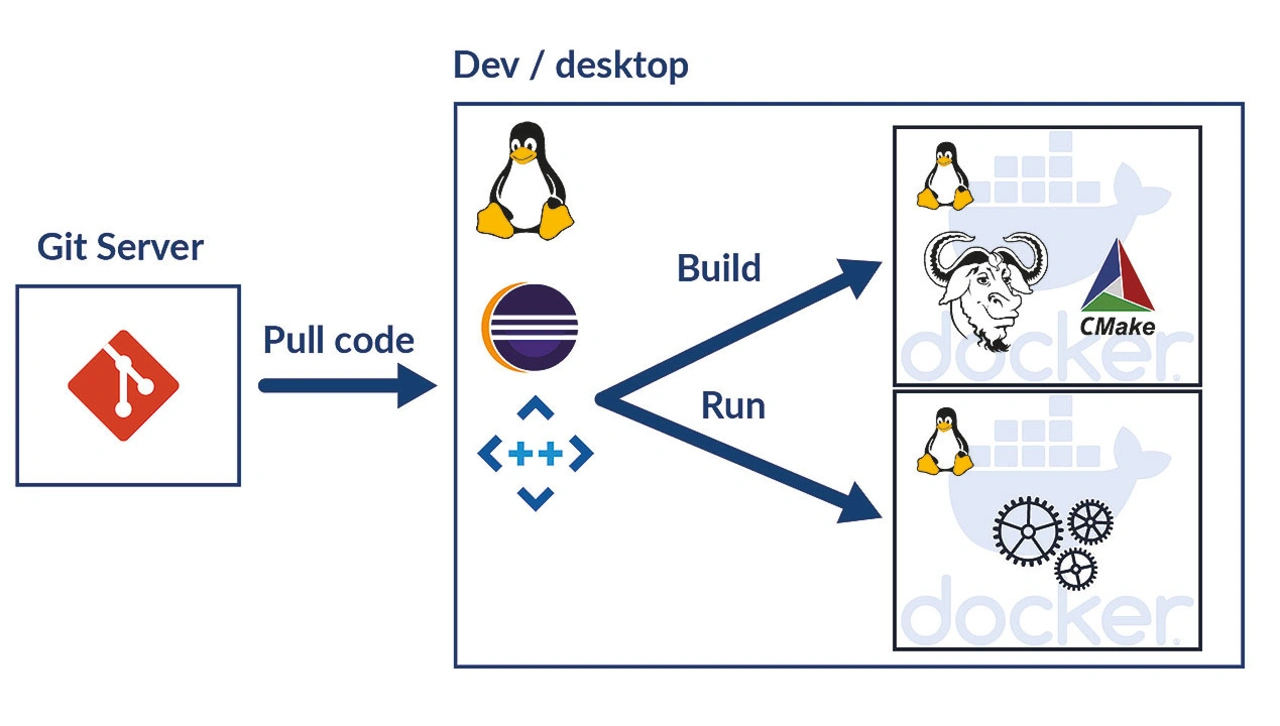 Der Code wird in ein Repository wie Git verschoben, in der Regel innerhalb einer DevOps-Plattform wie GitLab. Diese führt für jede Übergabe im Entwicklerzweig eine Pipeline aus bzw. GitLab erstellt den Code und führt automatisierte Testskripte aus (statische Analyse, Unit-Tests, Code-Abdeckung usw.). Auch Docker-Images können zur Erfüllung der Pipeline verwendet werden. Sobald der Code überprüft wurde, erfolgt seine Einbindung in den Hauptzweig.