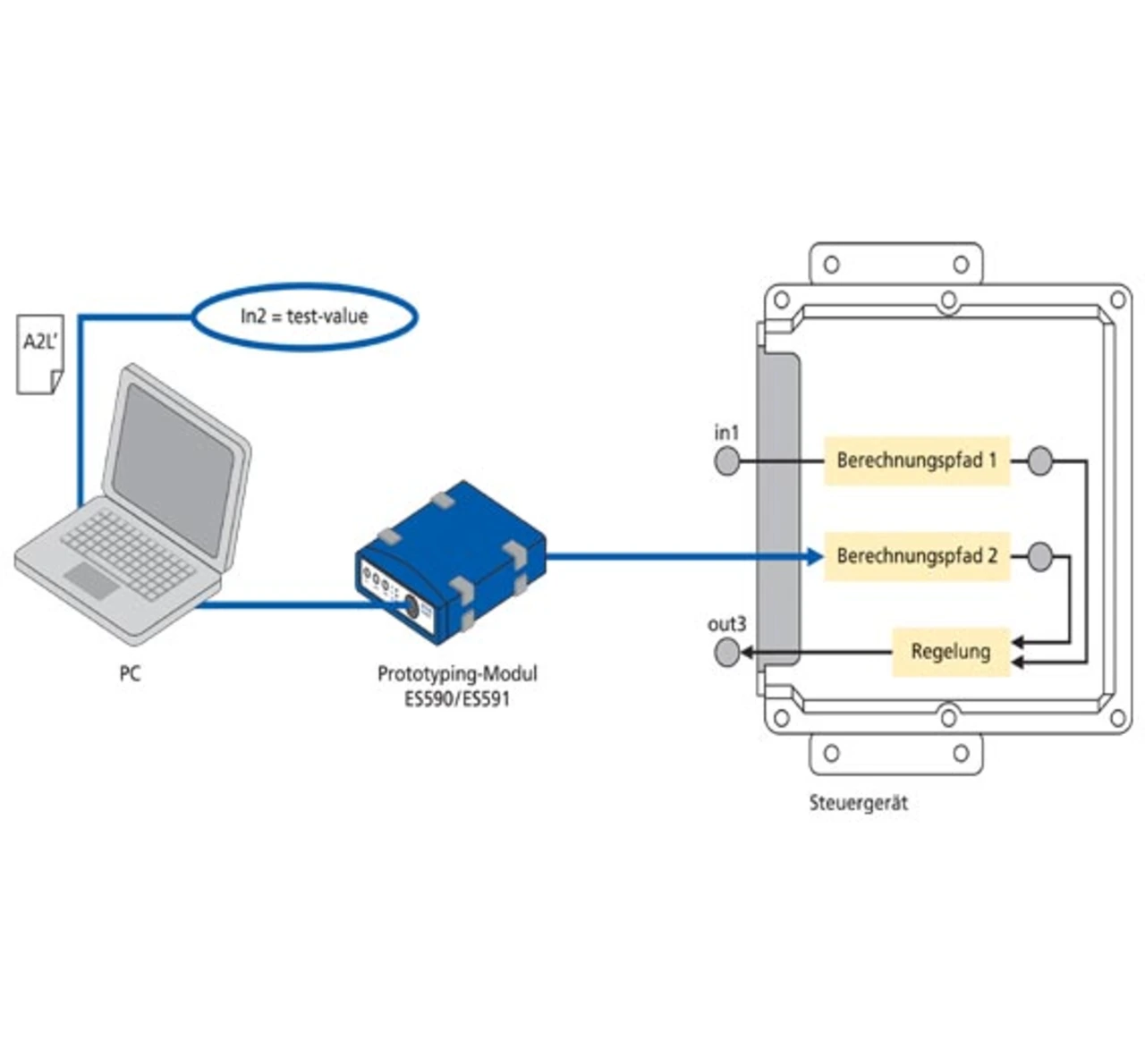 Beispielfall 4, einfacher Software-Test: Gelegentlich ist beim Testen das Einstellen der Software-Eingangswerte mit Hilfe der externen Steuergeräteschnittstellen schwierig. In solchen Fällen kann mit EHooks die Möglichkeit geschaffen werden, die Software direkt mit bekannten Eingangswerten zu stimulieren (Bild 3). Eine weitere Option ist das beliebige Ausführen komplexer Software-Teile unmittelbar auf dem Steuergerät, wie dies vom On-Target-Prototyping her bekannt ist.