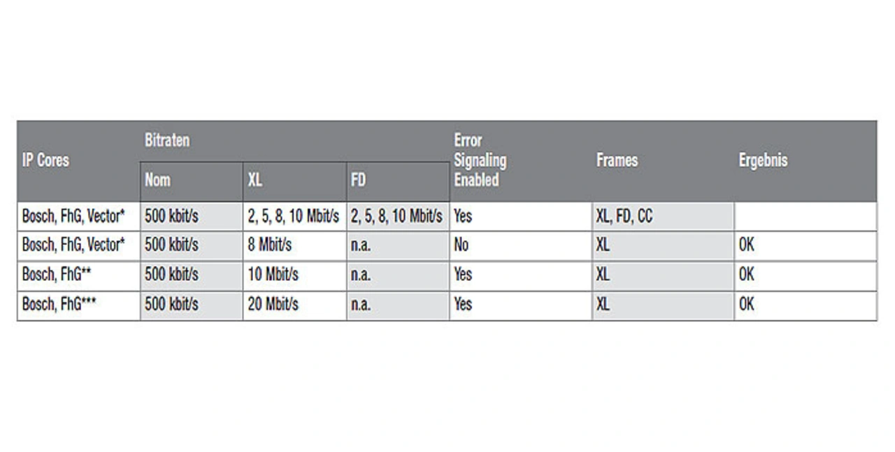 Die real erreichbaren Bitraten hängen nämlich nicht nur von Transceivern ab, sondern auch von der Topologie und den anderen elektromechanischen Komponenten (Kabel und Steckverbinder sowie Zusatzschaltungen). Der CiA hat deshalb Empfehlungen für das Einstellen der Bitraten (CiA 601-3) und eine CAN-FD-Kabel-Spezifikation (CiA 601-6) herausgegeben. Zusätzlich gibt es noch eine Spezifikation für CAN-Gleichtaktdrosseln (CiA 110), die einige Autohersteller vorschreiben.