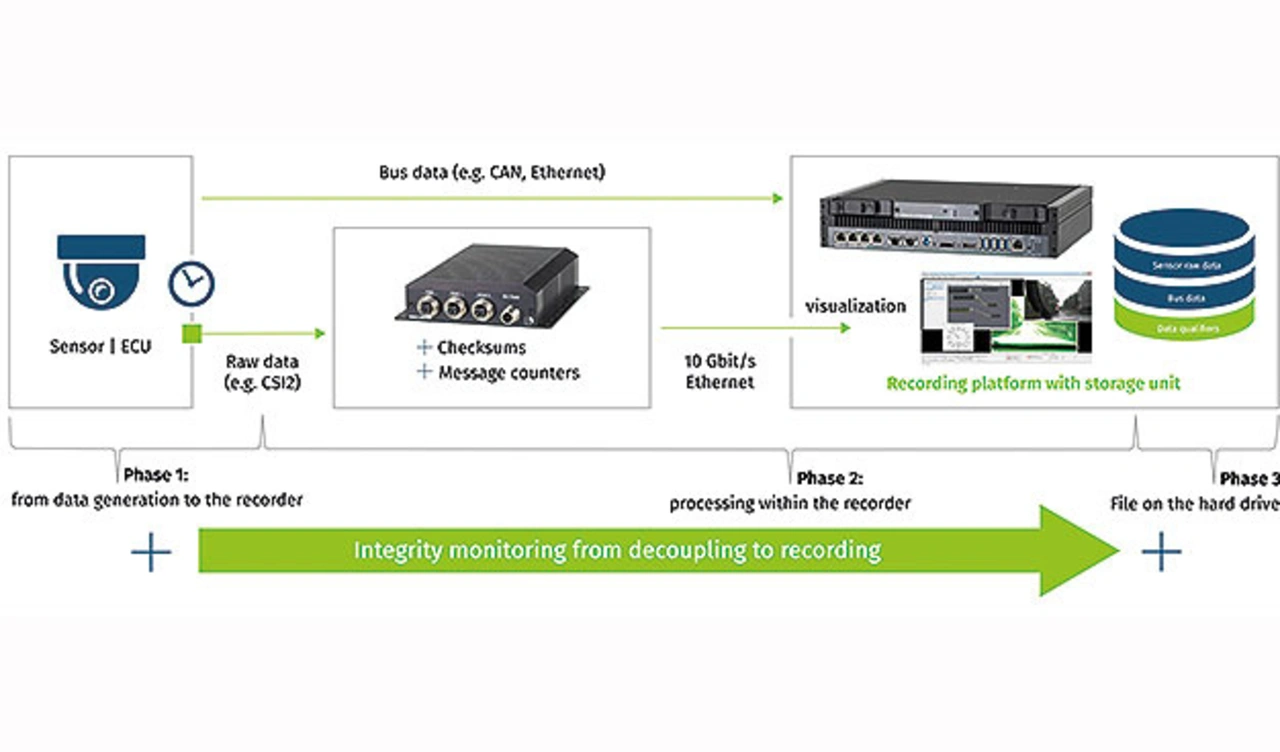 Für das sogenannte Intelligent Recording wird in den Aufzeichnungsprozess neben dem klassischen Datenrecorder zusätzlich eine Hochleistungsplattform gesetzt, die einzelnen Datenströme bereits während der Testfahrt analysiert. Dabei können einzelne definierte Szenen selektiert und die Aufzeichnung nur bei bestimmten Konditionen ausgelöst werden. Gleichzeitig werden Metadaten erzeugt. Nach der Testfahrt können die erfassten Szenen direkt gesichtet werden. Es wird Zeit gespart, da irrelevante Szenen sofort verworfen und die Daten-Pipeline nicht mit Duplikaten oder mit für eine Weiterentwicklung der Algorithmik nicht notwendigen Daten gefüttert werden.