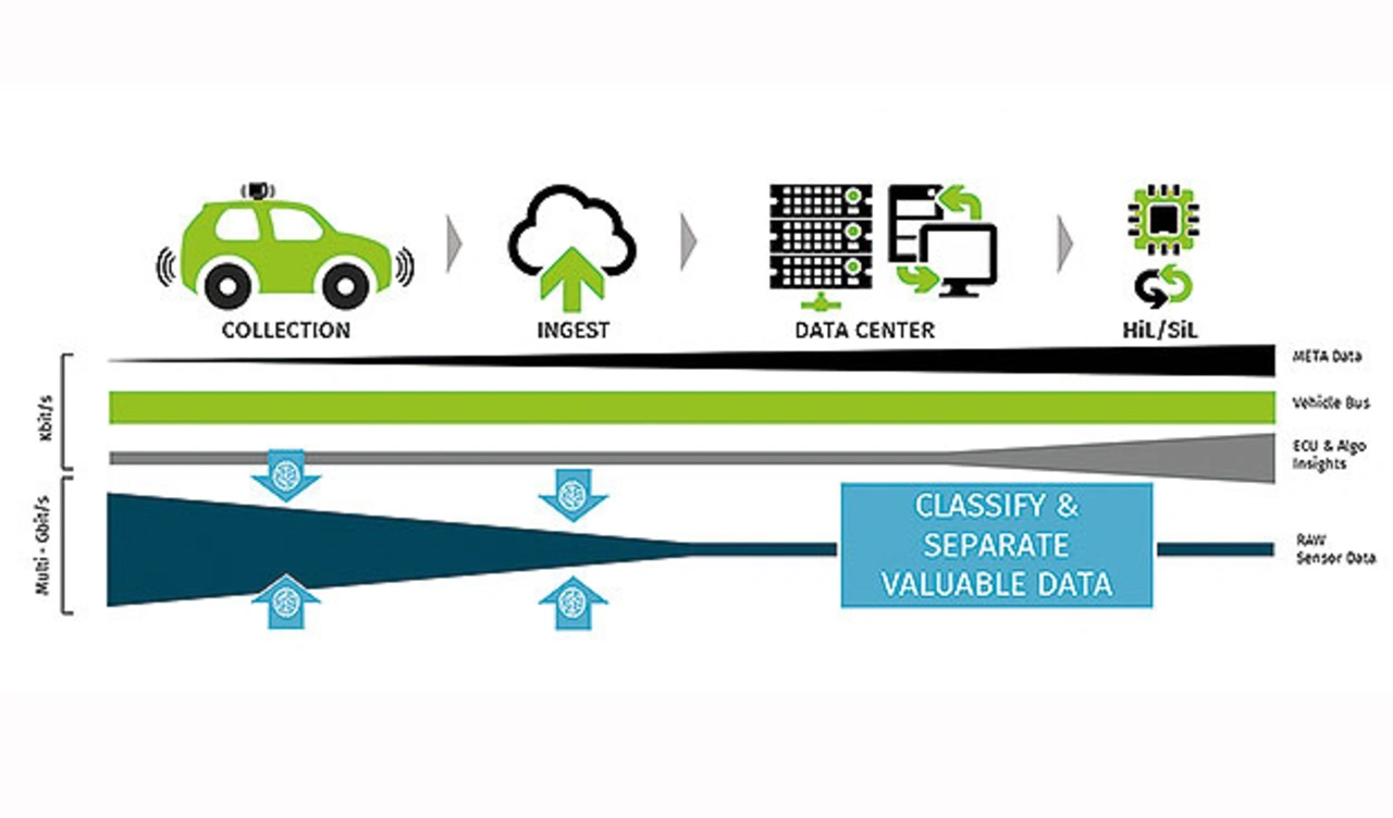 Getreu dem Motto »Every Bit is Gold« ist es für OEMs und Tier-1s, die sensorbasierte Systeme im Bereich Fahrerassistenz und autonomes Fahren entwickeln, üblich, möglichst viele Daten aus realen Testfahrten für die Validierung zu sammeln. Bei dieser Vorgehensweise wird man aber schnell mit verschiedenen Problemen konfrontiert: Sowohl das Speichern der Daten im Fahrzeug, als auch der Transport über das Netzwerk, die Speicherung im Rechenzentrum und die abschließende Verarbeitung der Daten, sind mit sehr hohen Kosten verbunden. Darüber hinaus erhalten Entwickler keine Informationen zur Relevanz der gesammelten Daten.