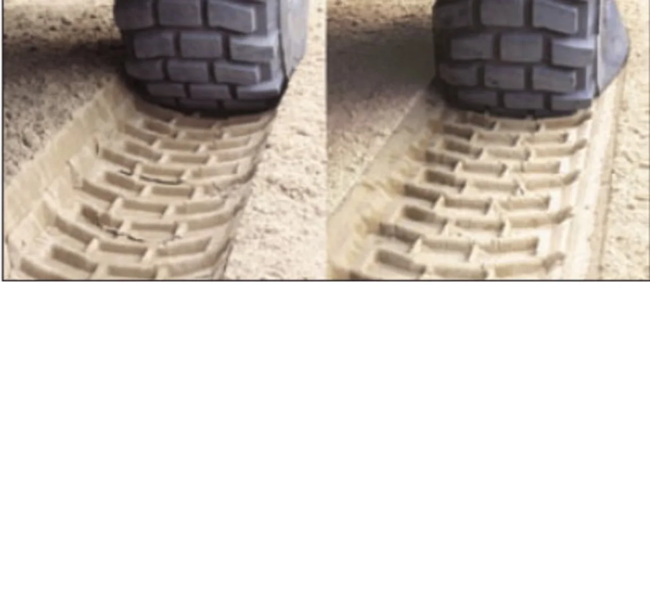 Während hoher Reifendruck auf der Straße für geringen Rollwiderstand und Treibstoffverbrauch sorgt, stehen beim Fahren im Gelände andere Eigenschaften im Vordergrund. Durch ein Verringern des Reifendrucks lässt sich beim Fahren auf weichem Untergrund der Aufstandsdruck derart verkleinern, dass keine nennenswerten Flurschäden entstehen (Bild 2). Auch hinsichtlich der verfügbaren Traktionsleistung besteht ein direkter Zusammenhang zwischen Bodenbeschaffenheit und verwendetem Reifendruck. Durch Senken des Reifendrucks im Gelände kann eine Verdoppelung der Zugkraft erreicht werden. Für den Erfolg oder Misserfolg einer Aufgabe kann das ein entscheidender Faktor sein. Zudem bewirkt ein niedriger Reifendruck durch die größere Verformung bei Bedarf eine bessere Selbstreinigung der Reifen.