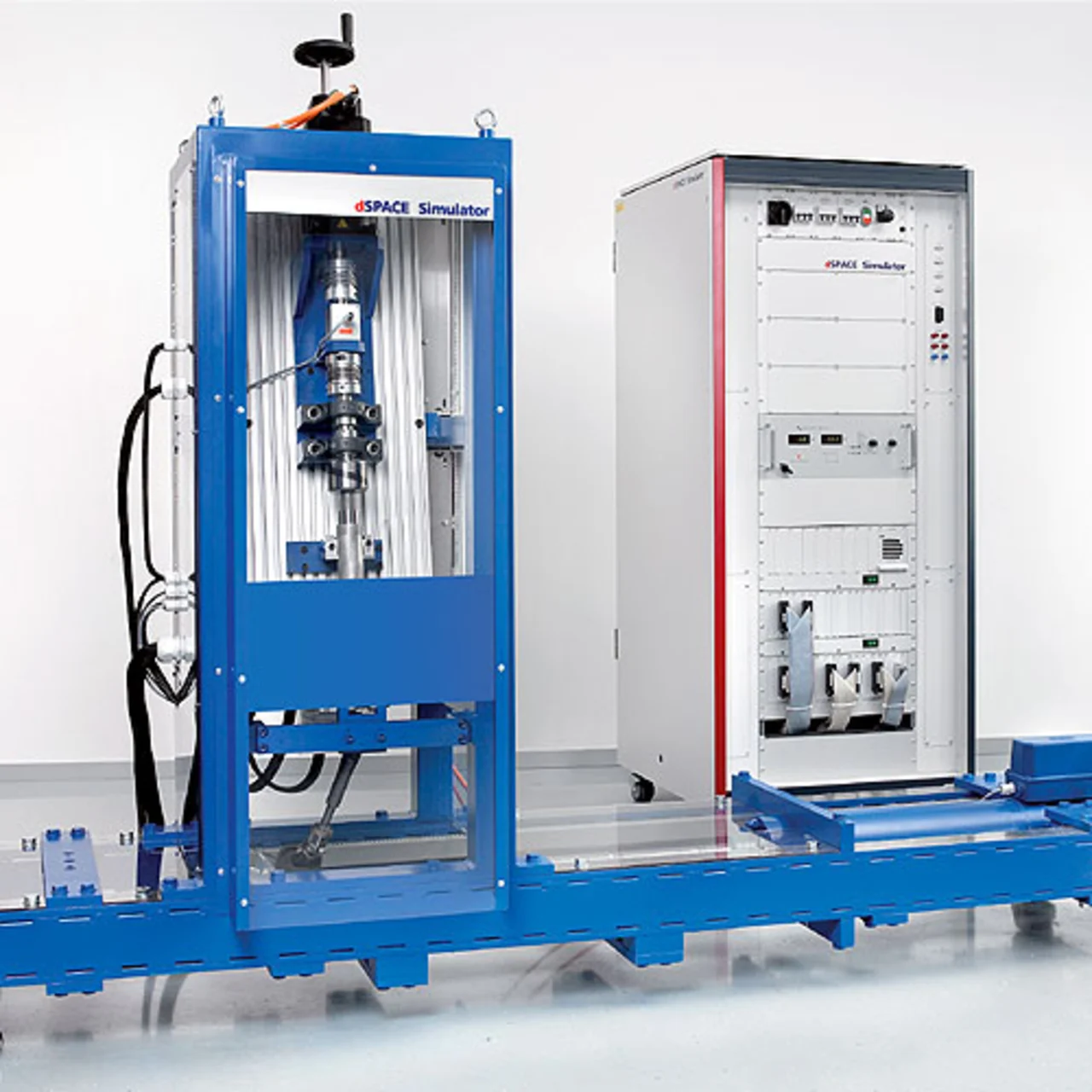 Die aufwendigste Prüfstandsvariante schließt die Zahnstange als mechanische Komponente ein (Bild 2). Dies ist z.B. bei EPAS gefordert, bei denen der Elektromotor direkt auf die Zahnstange wirkt und konstruktiv so integriert ist, dass eine Trennung von der Zahnstange schwierig ist. Hierbei muss zur Nachbildung der Radkräfte mittels einer geeigneten linearen Belastungseinrichtung auf die Zahnstange gewirkt werden. Die notwendigen Kräfte betragen 10 kN bis 30 kN bei Verfahrgeschwindigkeiten von 300 bis 500 mm/s. Neben einem soliden und schweren Prüfstandsaufbau bedingt diese Anordnung einen leistungsfähigen Linearantrieb (z.B. Elektrozylinder mit Kugelumlaufspindel). Der mechanische Strang vom fahrerseitigen Belastungsmotor über die vollständige Lenkung bis zum Linearantrieb weist in der Regel eine gewisse mechanische Beweglichkeit, eine geringe Steifigkeit und Endanschläge auf. Diese erschweren die Handhabung des Prüfstands. Eine fehlerhafte Bedienung kann leicht zu einer Beschädigung von Lenkung oder Prüfstandskomponenten führen.