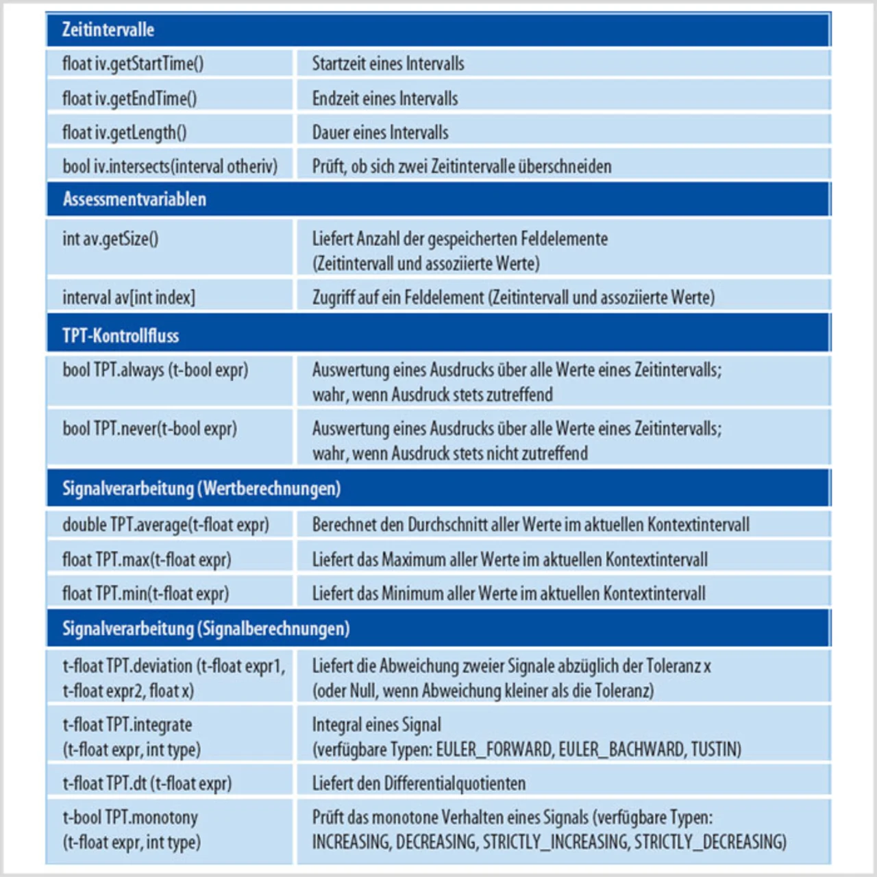 Andere verfügbare Erweiterungen umfassen Methoden zur Verarbeitung von Zeitintervallen und Assessment- Variablen, zur Signalverarbeitung, umfangreiche Vergleichsmethoden sowie spezielle Kontrollflussroutinen. Eine Auswahl ist in Tabelle 2 aufgelistet.