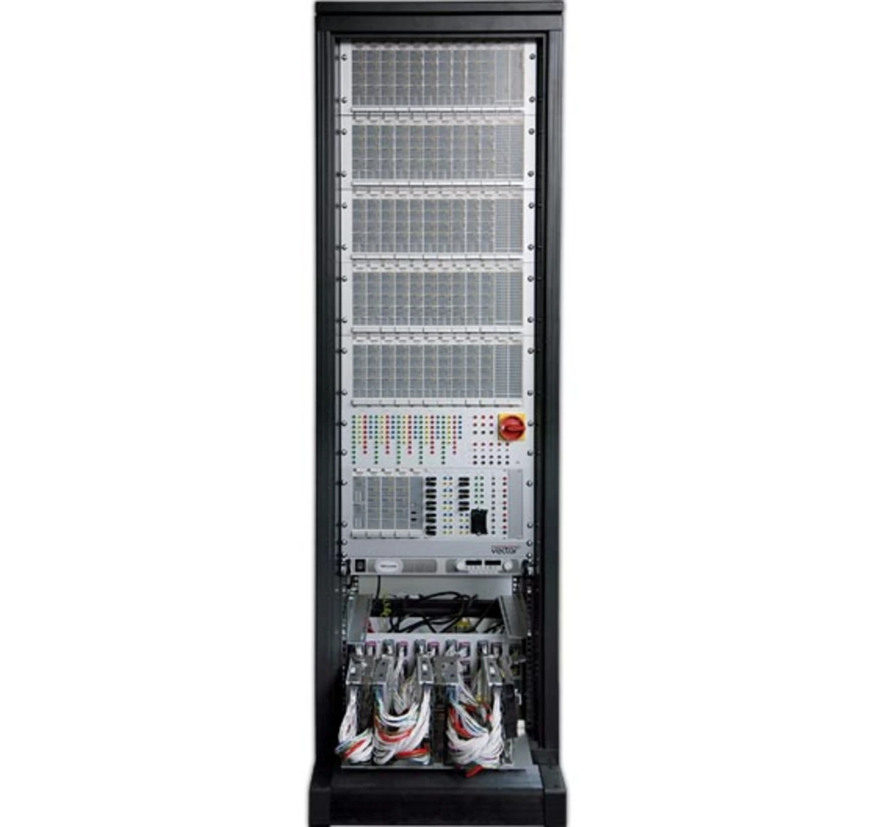 Die Komplexität und Vielfalt der Mux-Tests lässt sich nur durch eine konsequente Automatisierung der Testabläufe ökonomisch sinnvoll bewältigen. Das im 19‘‘-Industrieformat modular aufgebaute VT System ist für die charakteristischen Aufgaben der Testautomatisierung optimiert und ermöglicht Konfigurationen, angefangen vom kompakten Tischgerät mit sechs Einschüben bis hin zum großen HiL-System für das Testlabor (Bild 2). Das VT System realisiert eine umfassende Emulation der Steuergeräteumgebung hinsichtlich Ein- und Ausgangsbeschaltung sowie der Kommunikation auf den angeschlossenen CAN-/LIN-Bussen.