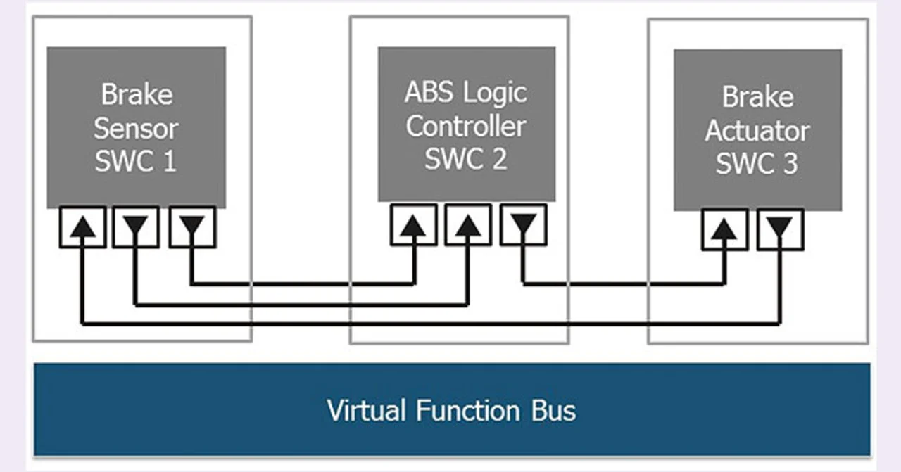 Durch die Verwendung eines VFB benötigen die Anwendungs-Software-Komponenten (Software Components, SWCs) auch keine Informationen über andere SWCs. Die Software-Komponenten übergeben ihren Output an den unterstützenden VFB, der diese Informationen an die Eingabeports der Zielkomponenten weiterleitet. AUTOSAR definiert die Eingabe- und Ausgabeports ebenso wie das Format für den Informationsaustausch. Dieser abstrahierte Ansatz ermöglicht es, das Zusammenspiel aller Software-Funktionen des Fahrzeugs und die Schnittstellen vor der Definition der zugrunde liegenden Hardware zu validieren. Da alle Funktionen auf einem VFB als Software-Elemente definiert sind, lassen sich Designänderungen viel einfacher durchführen als bei einem herkömmlichen Entwicklungsprozess.