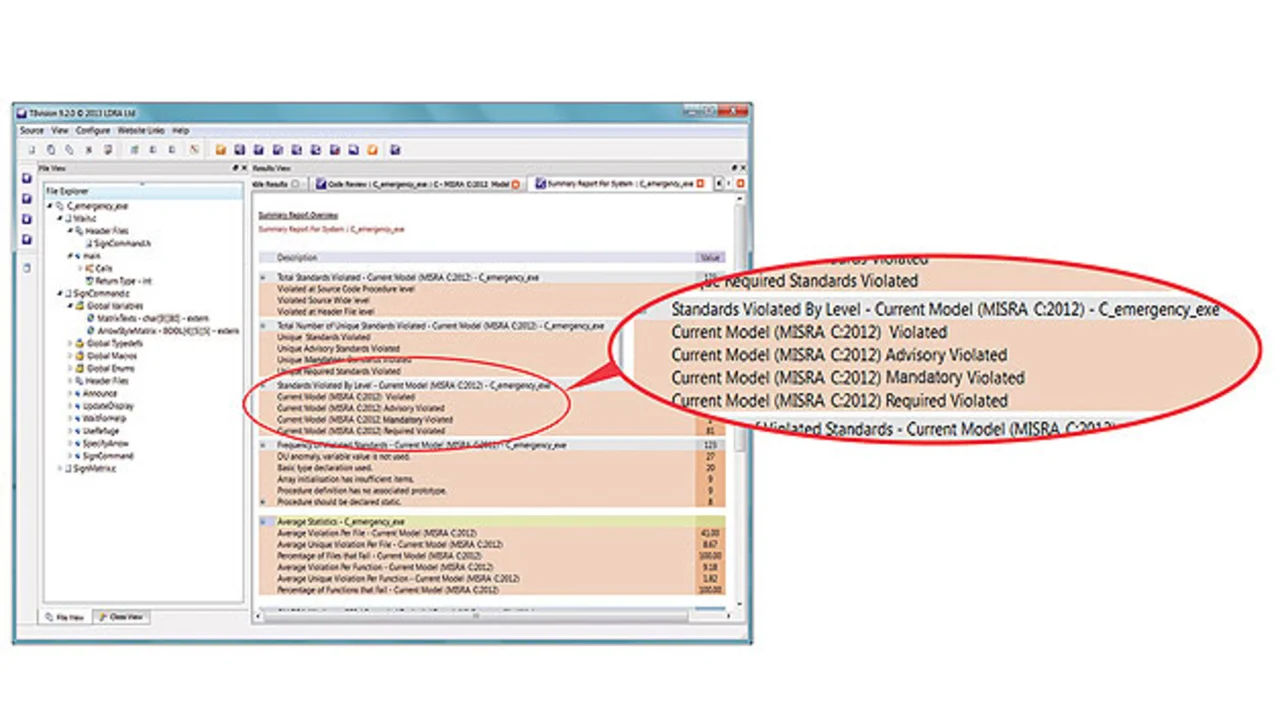 MISRA-geprüfter Code weist in der Regel wenige Defekte auf, lässt sich einfach pflegen und ist leicht lesbar, konsistent und verifizierbar. Im Wesentlichen geht es bei MISRA um bewährte Verfahrensweisen beim Codieren. Dieses Prinzip wird durch den Verweis auf die entsprechenden Codier-Regeln in ISO 26262 bekräftigt. MISRA-C:2012-Regeln helfen, den hohen Anforderungen an die Software-Qualitätssicherung gerecht zu werden. Testwerkzeuge mit Unterstützung für die MISRA-Kon-formität sollten die Möglichkeit geben, einfach zwischen verschiedenen Versionen des Standards (C, C++, Java) und der passenden Untermenge (MISRA C:2004 für frühere, MISRA C:2012 für neue Projekte sowie MISRA AC für automatisch generierten Code) zu wechseln. Außerdem kann der Anwender zwischen der vollständigen Konformität und einer anwenderdefinierten Untermenge der Regeln wählen, die hausinternen Vorlagen oder Anforderungen entsprechen.