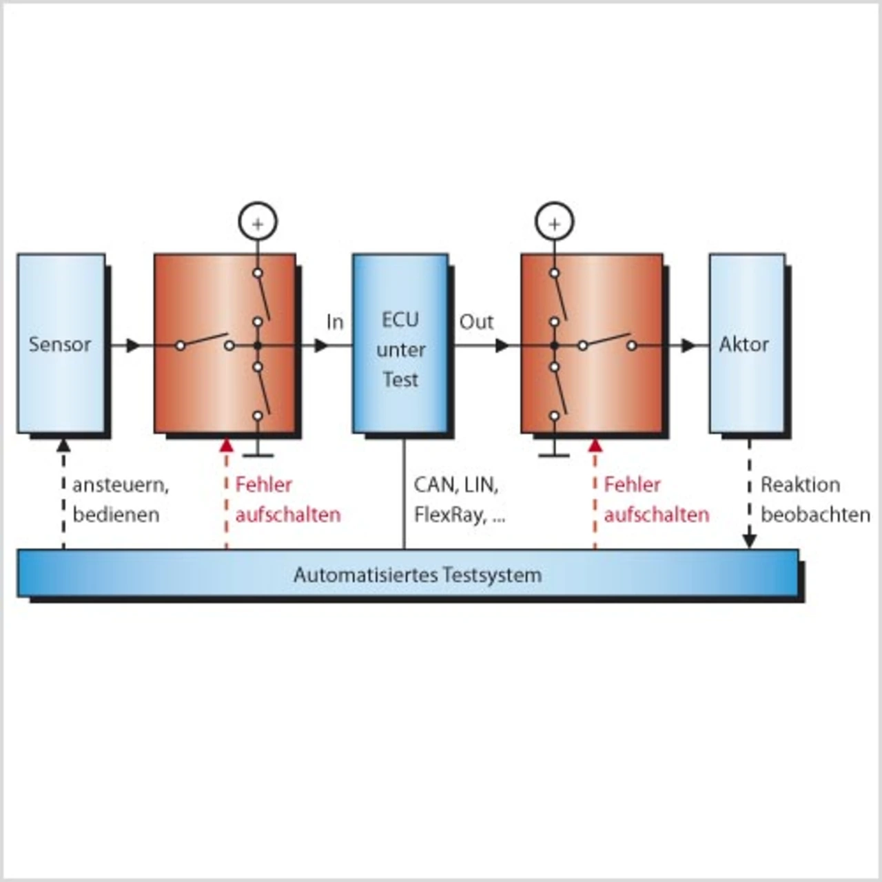Ein modernes Testsystem für Steuergeräte muss neben der Prüfung des Funktionsumfangs auch den Test der wichtigsten Fehlerfälle erlauben. Dies gilt für die Kommunikations-Schnittstellen ebenso wie für die I/O-Schnittstellen des Steuergeräts. Mit speziellen Konzepten können Testsysteme schon früh im Entwicklungsprozess eingesetzt werden.