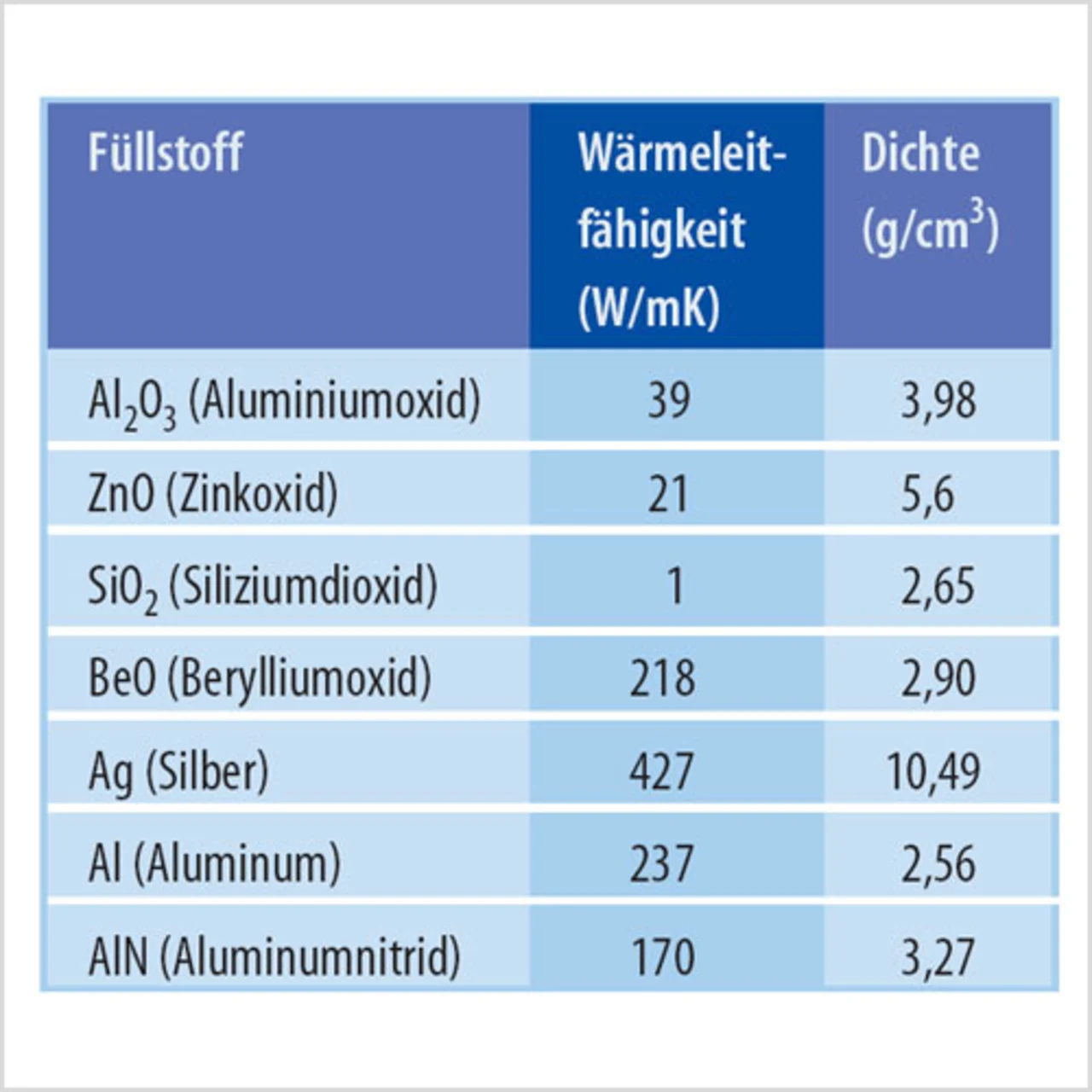Entscheidend für die thermische Leistung ist das Füllstoffmaterial, die winzigen Feststoffteilchen in der Polymer-Matrix, die für die Wärmeübertragung verantwortlich sind. Gewöhnlich fällt die Wahl auf Keramikpulver, wie Aluminium- oder Zinkoxid, da diese zu einem angemessenen Preis und mit guten dielektrischen Eigenschaften erhältlich sind. Auch Metallpartikel wie Silber oder Aluminium kommen häufig zum Einsatz. Die Füllstoffe werden in gleichmäßiger Konzentration in das Polymer eingebracht, um die Handhabung zu erleichtern und die Verarbeitbarkeit sowie eine konstante Wirkung zu gewährleisten. Zu ihren wichtigsten Merkmalen gehören Bulk-Wärmeleitfähigkeit, die Partikelmorphologie (Größe und Form) und das Streuverhalten. In der Tabelle sind die Wärmeleitfähigkeitswerte für mehrere typische Füllstoffmaterialien zusammengefasst.
