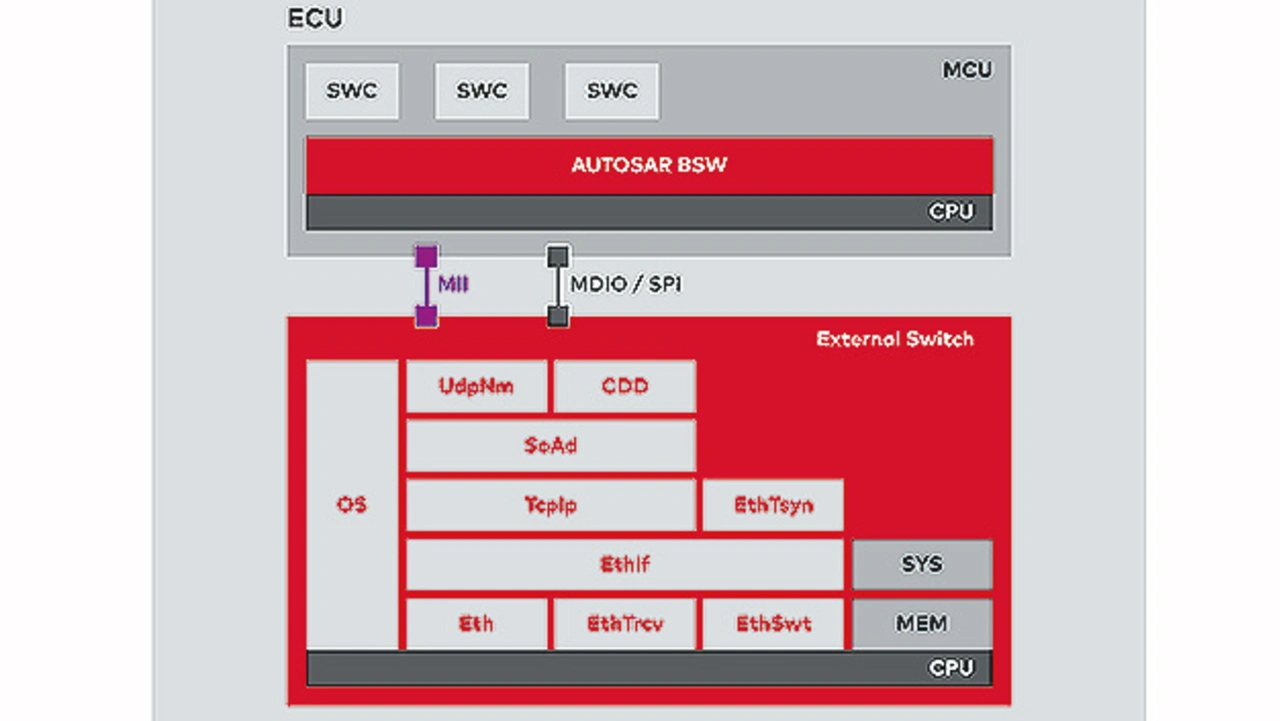 Ethernet-Switches sind im Automotive-Umfeld zunehmend wichtig: Um den Host-Mikrocontroller zu entlasten, werden wesentliche Teile des AUTOSAR-Stack in den Switch verlagert. Wie sieht eine solche Softwarearchitektur aus und welche Anforderungen sind bei der Entwicklung zu beachten?