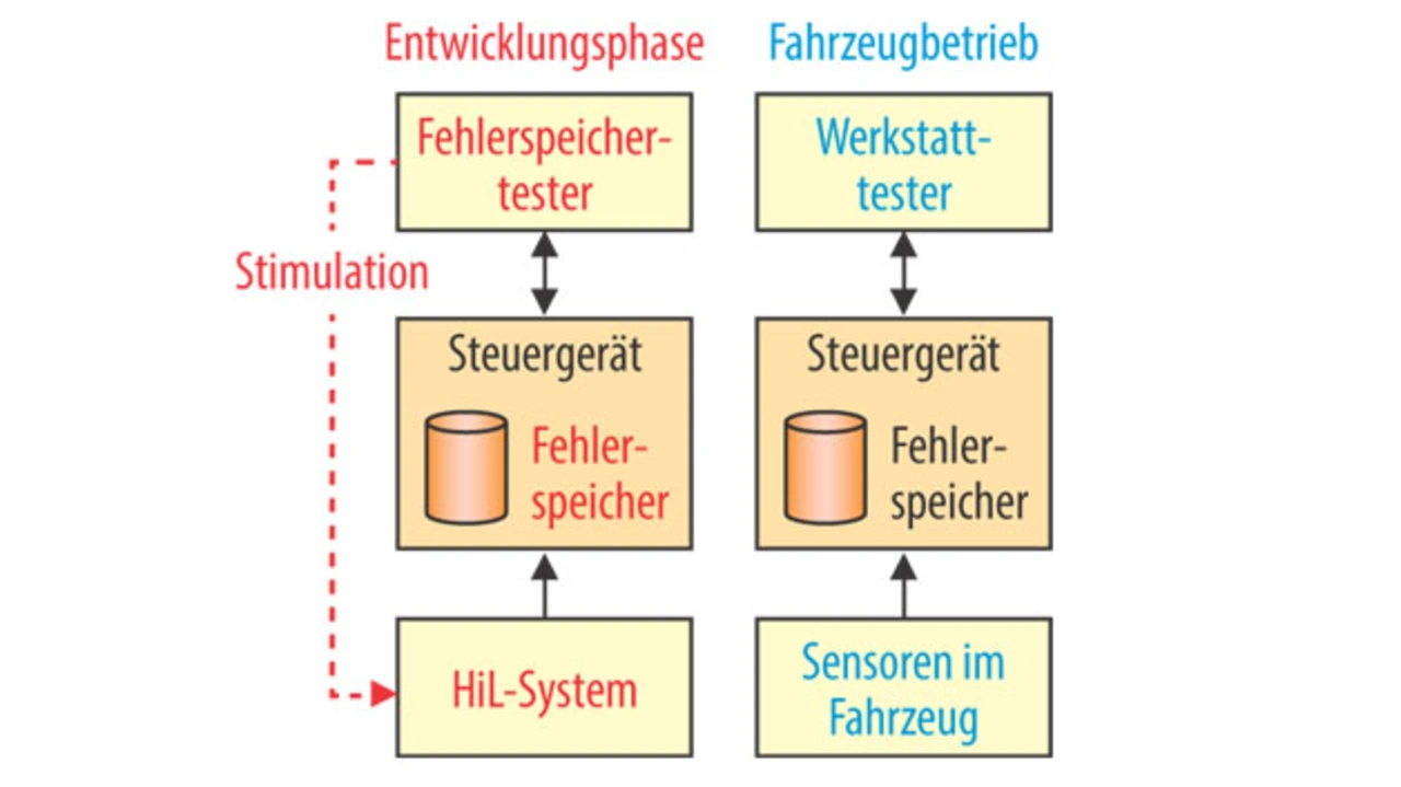 Eine Stärke des Fehlerspeichers ist also, dass die Algorithmen zum Erkennen von Fehlerzuständen vom Fahrzeug bereitgestellt werden. Das setzt jedoch voraus, dass diese Diagnosefunktion selbst korrekt arbeitet. Folglich muss diese Funktion während der Fahrzeugentwicklung intensiv getestet werden. Wegen der sehr großen Zahl existierender Fehler-Codes und der umfangreichen Umgebungsdaten und Fehlerzustände können die Tests der Diagnosefunktion sehr aufwendig werden, insbesondere weil für jeden Test auch die Parameter der Diagnose-Requests gesetzt und die Antwortparameter geprüft werden müssen. Dieser Aspekt lässt sich jedoch stark vereinfachen, indem der Tester auf eine abstrakte Sichtweise zurückgreift. Routinetätigkeiten zum Setzen, Prüfen und Auffinden von Fehlereinträgen werden so komplett verborgen.