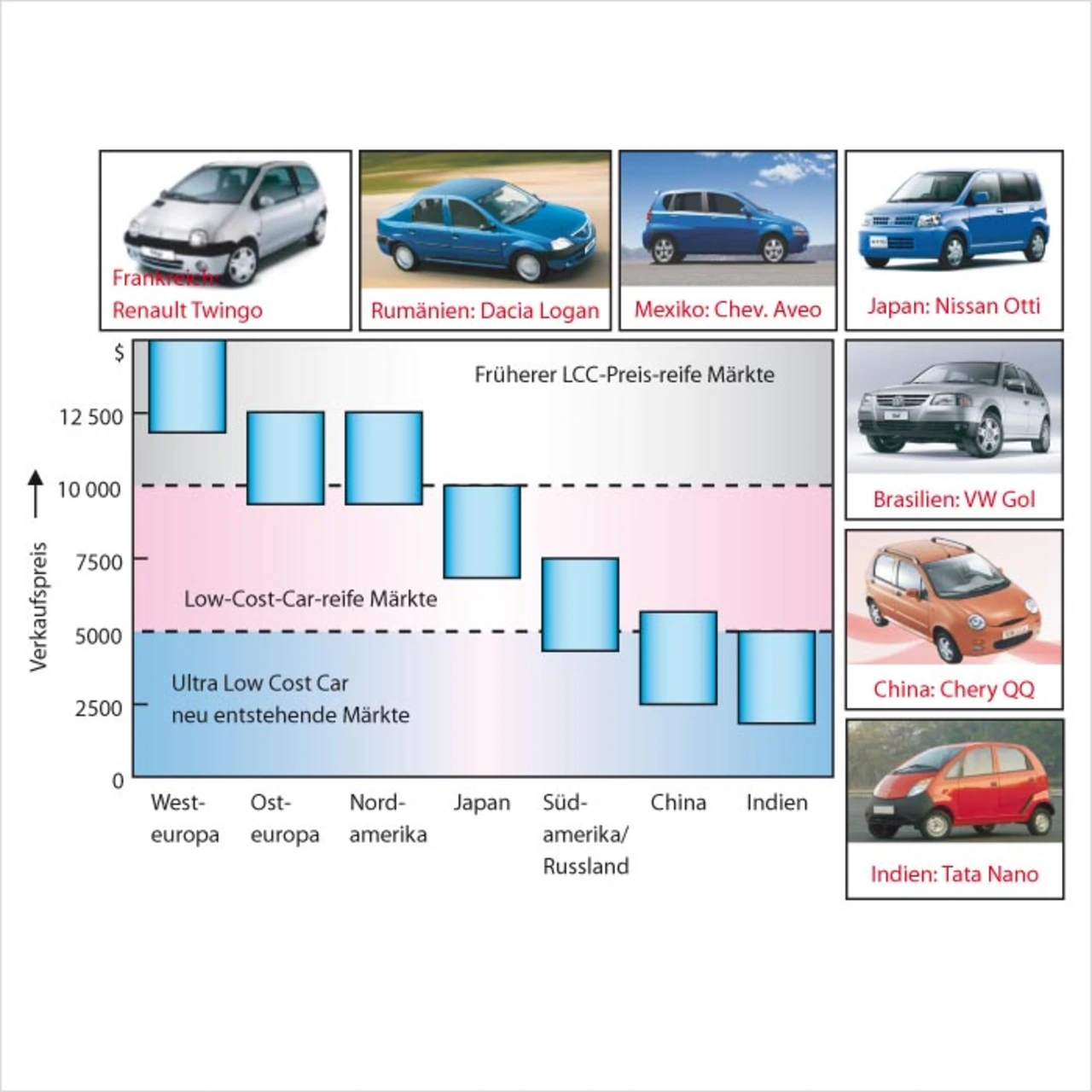 Das Marktsegment der Billigautos ist kein neues Phänomen. Fahrzeuge wie der VW Käfer, der Fiat 500 oder der Citroen 2CV trugen seinerzeit dazu bei, das Auto in Europa erschwinglich zu machen. Der Tata Nano macht nun die Anschaffung eines Autos für Millionen von Konsumenten in aufstrebenden Volkswirtschaften interessant.
