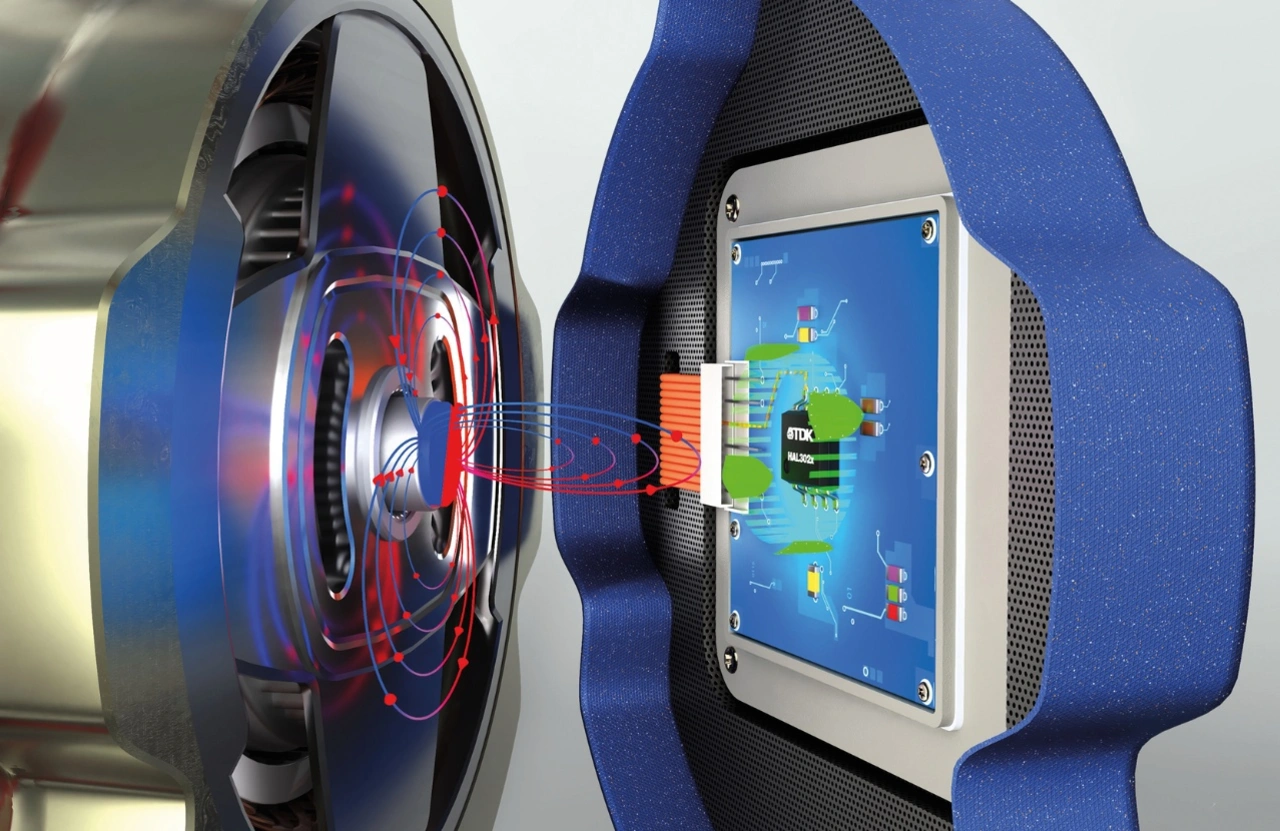 Daher etablieren sich zunehmend intrinsisch störfeldresistente Sensoren, die nach dem Prinzip der differenziellen Messung arbeiten. TDK bietet hierfür die führende Lösung der Hexagonalzelle an: Auf dem Chip befinden sich sechs winzige Magnetsensoren, sogenannte Zellen, die gemeinsam durch Differenzbildung nur noch die Veränderungen, also nicht mehr den Gesamtbetrag, des Magnetfeldes messen. Tritt ein Störfeld auf, so werden alle Zellen gleichermaßen beeinträchtigt – ihr Unterschied, also die Differenz, bleibt dagegen konstant und wird als Nutzsignal ausgegeben. Somit ist das Nutzsignal frei vom Einfluss des Störfeldes.