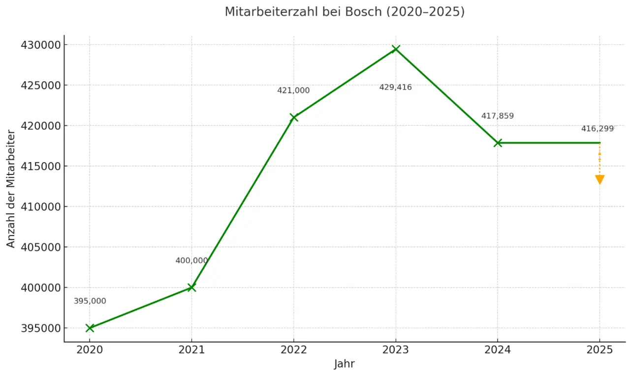 Bosch-Chef Stefan Hartung rechnete zuletzt angesichts der Wirtschaftslage und dem Wandel in der Autoindustrie mit weiteren Einschnitten. Ende 2024 hatte der Konzern weltweit insgesamt fast 417.900 Beschäftigte - und damit rund 11.600 weniger als ein Jahr zuvor. In Deutschland sank die Mitarbeiterzahl um gut 4.500 auf zirka 129.600.