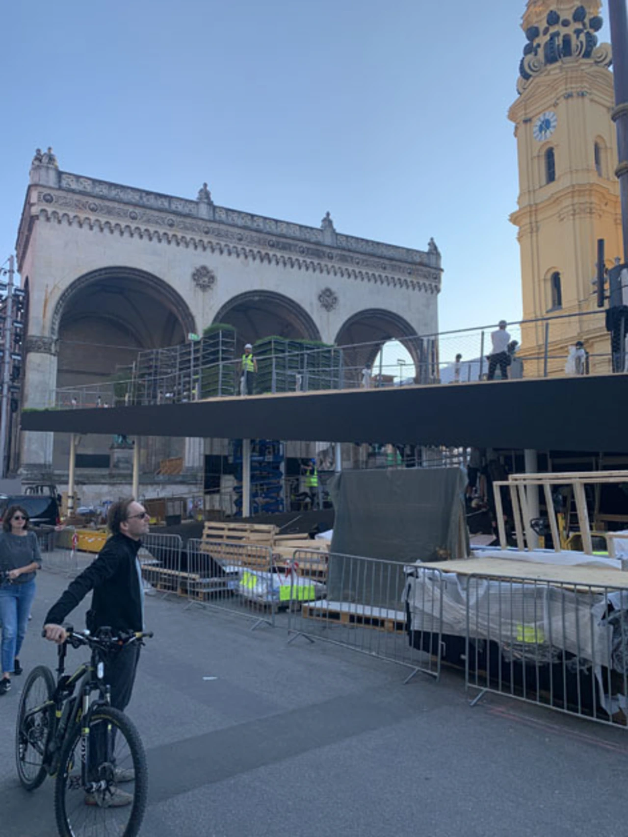 Bereits am Sonntagabend war der Aufbau der Ausstellungen in der Münchner Innenstadt in vollem Gange. Straßensperrungen, Lkws mit Anlieferungen, Kräne und Security-Personal sorgten schon vor Beginn der Ausstellung für Gedränge.