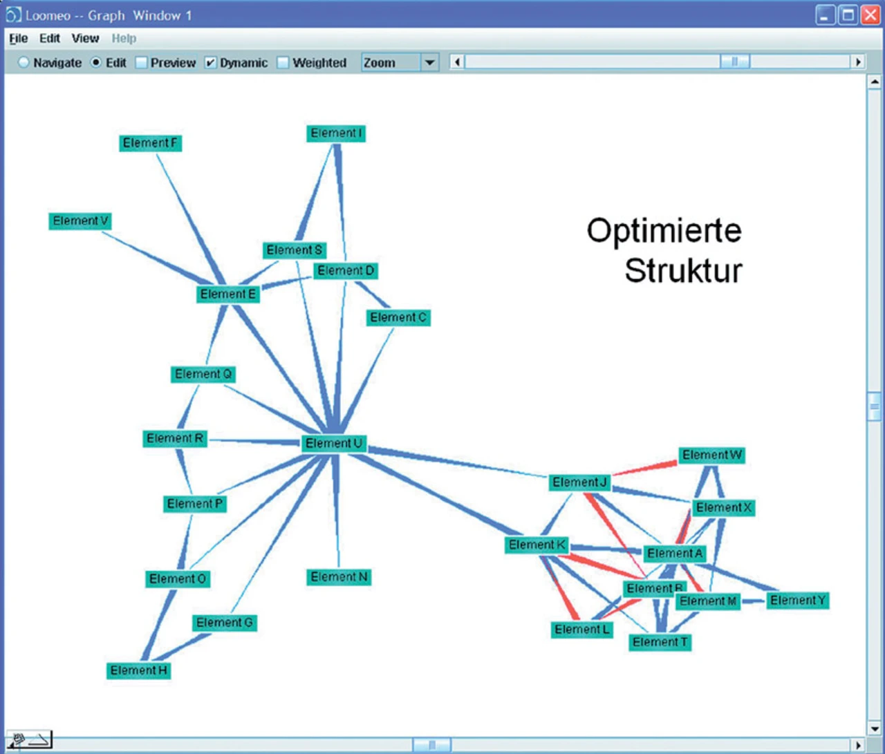 Die Umsetzbarkeit der identifizierten Potentiale, wie etwa die Reduktion der Anzahl der Kreisschlüsse, wird schließlich im letzten Schritt überprüft und durchgeführt. Im vorliegenden Fall konnte durch die Ableitung konstruktiver Maßnahmen, der Konzeption von Standardschnittstellen, das potentialträchtigste Szenario realisiert werden.