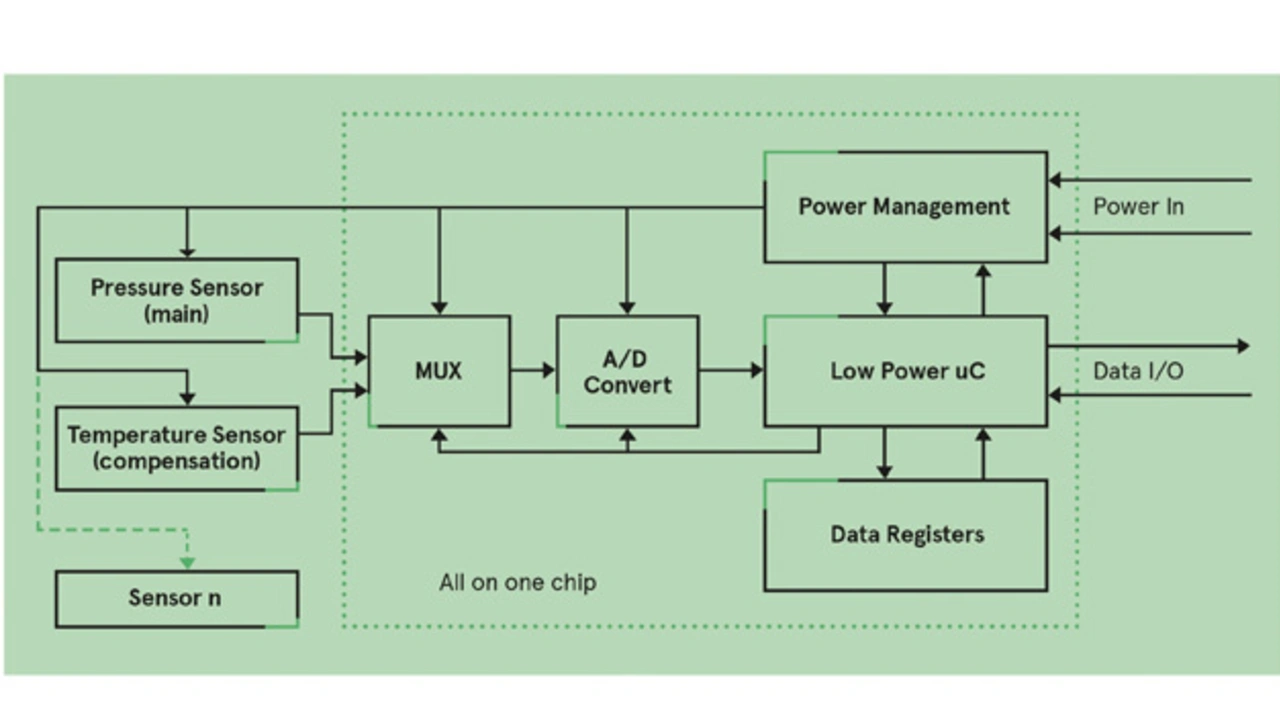 Der Stromverbrauch ist ein weiterer Vorteil, wenn sich digitale Ausgänge so nah wie möglich am Sensor befinden. Immer kleinere integrierte Schaltkreise erhöhen die Energieeffizienz, da niedrigere Spannungen verwendet werden. Die Leistungsaufnahme ist quadratisch proportional zur Versorgungsspannung, sodass jeder Bruchteil eines Volts, der mit einer neuen Schaltungstechnologie eingespart wird, oft deutlich mehr Energieeffizienz ausmacht. Viele IoT-Sensorknoten verlegen sich darauf, den Strom in großen Bereichen der Leiterplatte abzuschalten, um wertvolle Batterieenergie zwischen den Betriebsphasen einzusparen. Sie werden nur eingeschaltet, wenn Messungen durchzuführen und die resultierenden Daten zu verarbeiten sind. Einige von ihnen bleiben möglicherweise aktiv, damit sie auf asynchrone Ereignisse reagieren können. Durch die Integration von A/D-Wandlung und Steuerlogik in den Sensor lässt sich mehr Intelligenz in das jeweilige Subsystem packen. Das System kann selbst entscheiden, Daten aus dem Pufferspeicher zu nutzen, bis sich eine wesentliche Änderung der Bedingungen ergibt, die ein Eingreifen des Mikroprozessors im Knoten erfordert.