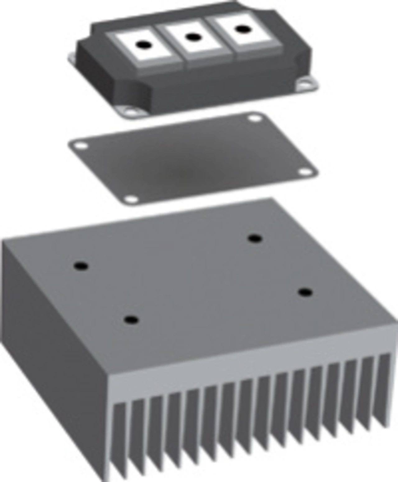 Bei IGBTs oder MOSFETs fungiert die PGS als Wärmeschnittstelle zum Schutz vor Beschädigung. Damit die dort entstandene Wärme abgeführt und an die Umgebung abgegeben werden kann, werden IGBTs und MOSFETs auf Kühlkörpern montiert. Ein IGBT-Modul, das an einem Kühlkörper angebracht ist, hält relativ niedrige Betriebstemperaturen und eine optimale Leistung aufrecht. Um den thermischen Widerstand zwischen der Grundplatte und dem Kühlkörper zu minimieren und eine möglichst gute Wärmeleitfähigkeit zu erzielen, nutzen Ingenieure ein thermisches Interface-Material (TIM). Oftmals kommen dafür spezielle Kleber und Pasten zum Einsatz. Eine neue Alternative ist die Soft-PGS, die mögliche Luftspalten sowie damit verbundene Wärmewiderstände überbrückt und eine besonders gute Wärmeleitfähigkeit ermöglicht.