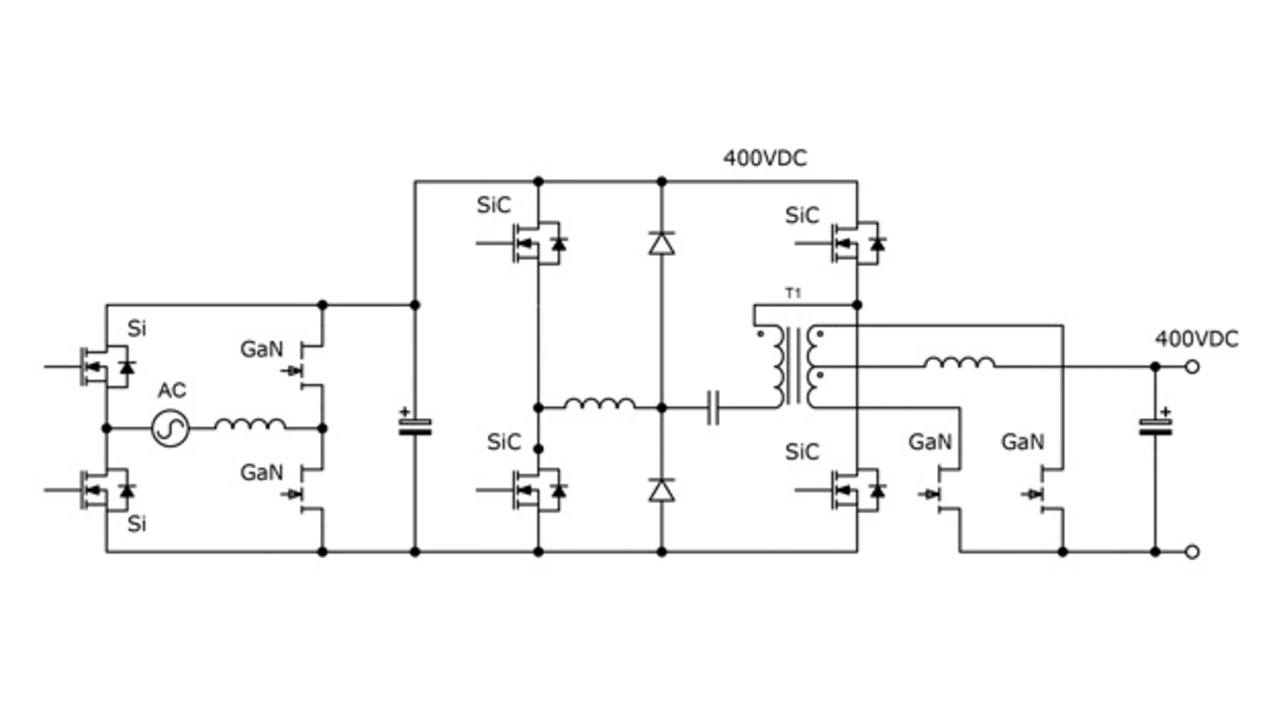 SiC und GaN können in allen Stufen eines typischen Leistungswandlers vorteilhaft eingesetzt werden – von der Totempole-Gleichrichter-PFC-Stufe über den Hauptinverter bis hin zu den Synchrongleichrichtern.