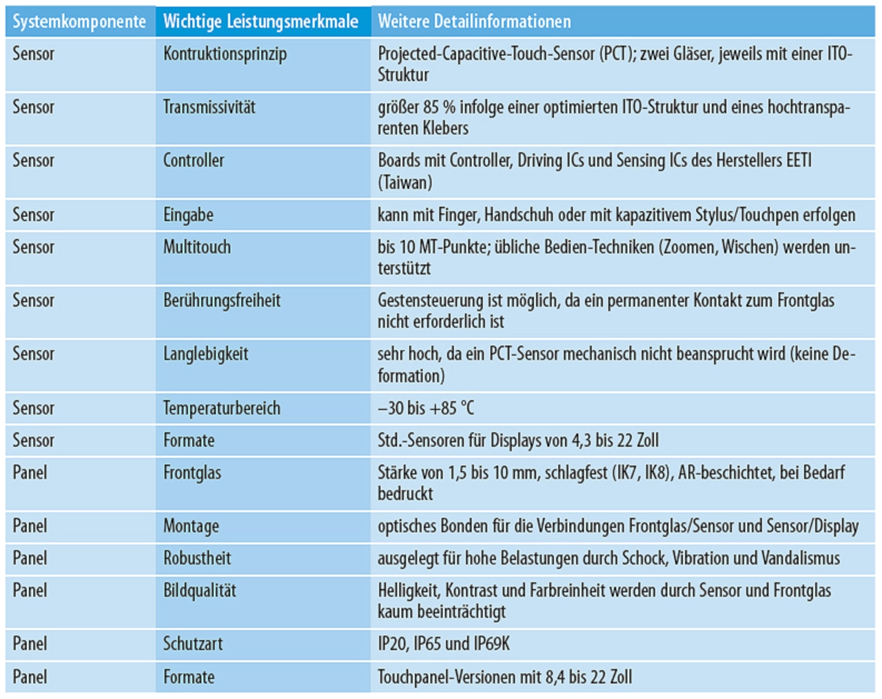 Letztere vereint sämtliche Technologien und Prozesse für die Entwicklung und Fertigung von Touch-Systemen unter einem Dach. Neben dem Sensordesign mit ITO-Strukturierung (Indium-Zinnoxid) und Controlleranpassung gehören hierzu auch diverse Kompetenzen für die Bereiche Bonden, Glasbearbeitung, Glasbedruckung und Gehäusefertigung. Damit ist der Touch-Spezialist ein geeigneter Partner für die Entwicklung kundenspezifischer Touch-Lösungen.