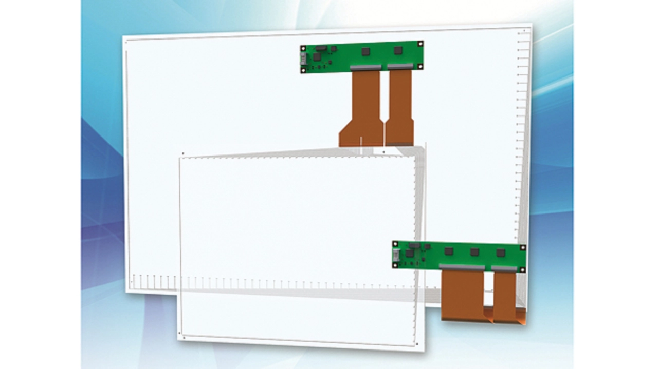 Die PCT-Sensoren des HMI-Spezialisten nutzen hochwertige ITO-Strukturen mit Linienbreiten bis herab zu 0,1 mm und Fächenwiderständen von typisch 60 Ω. Die beiden Glasplatten werden mit einem Kleber verbunden, der über einen angepassten Brechungsindex verfügt. Dieses optische Bonden sorgt für einen weitgehend reflexionsfreien Lichtdurchgang und erstklassige optische Parameter (Transmissivität z.B. über 85 %). Der Kleber ist darüber hinaus noch uneingeschränkt UV-beständig. Der Abstand der Glasplatten liegt bei 0,1 mm und je nach Diagonale erreicht die Dicke des gesamten PCT-Sensors Werte von etwa 1,3 bzw. 2,2 mm. Zwei Flachbandkabel für ZIFF-Steckverbinder ermöglichen den Anschluss an ein Controller Board (Bild 1).