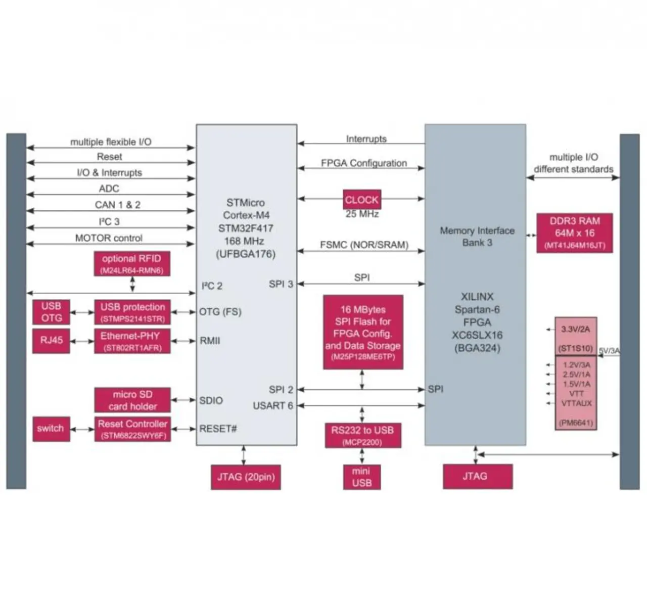 Damit ist der Cortex-M4 also für alle Applikationen prädestiniert, die mehr Rechenleistung benötigen oder eine Fließkomma-Arithmetik erfordern. Die Beschleunigung der Fließkomma-Arithmetik gegenüber einer Software-Bibliothek beläuft sich gut auf den Faktor 10. Der STM32F4xx ist in den Gehäusen LQFP64, LQFP100, LQFP144, LQFP176 und UFBGA176 verfügbar und ist damit »pin-to-pin«-, software- und featurekompatibel zum STM32F2xx. Diese Eigenschaft macht es möglich, den STM32F2xx problemlos gegen den neuen STM32F4xx auf dem Xynergy-Board auszutauschen und die Vorteile des Cortex-M4 in dieser Umgebung zu nutzen.