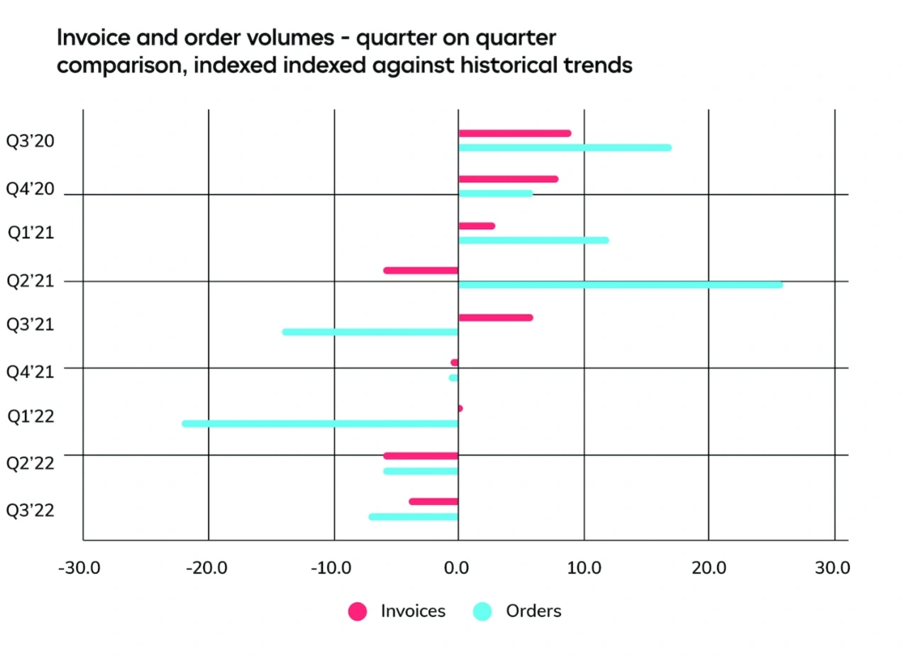 Das Transaktionsvolumen zwischen Käufern und Lieferanten hat sich weltweit im dritten Quartal in Folge verlangsamt.