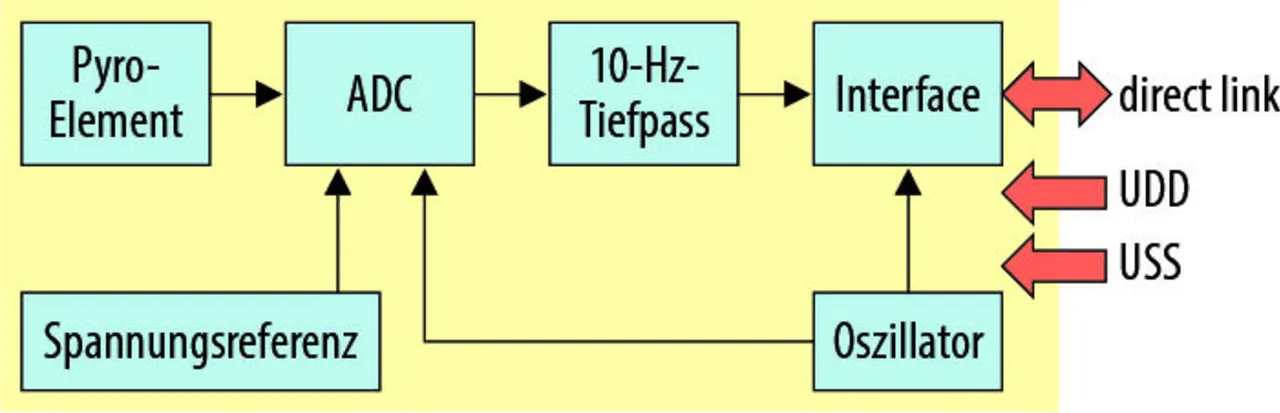 Die Detektoren der erstgenannten Familie enthalten – entsprechend Bild 3 – neben dem eigentlichen pyroelektrischen Detektor und dem A/D-Wandler auch die gesamte Kommunikationslogik einschließlich einer bidirektionalen, seriellen Schnittstelle. Auf diese Weise werden die aktuellen Detektionswerte an einen Mikroprozessor ungefiltert übermittelt, der aus diesen Werten die Bewegungswerte errechnen kann.