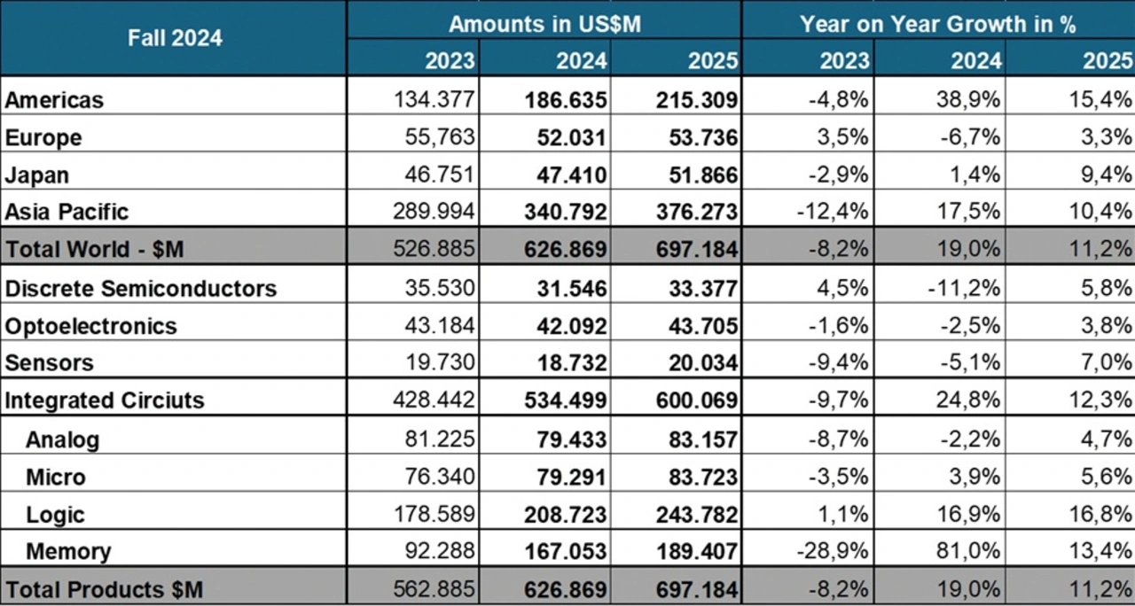 Angesichts dieser Entwicklungen – von der Marktkorrektur bis zu den systemischen Schwächen von Schlüsselindustrien – kann es nicht überraschen, dass der Halbleiterverbrauch in Europa zurückgeht. Die World Semiconductor Trade Statistics (WSTS) korrigierte in seinem jüngsten Forecast die Zahlen für Europa auf -6,7 % für 2024 und +3 % für 2025. Das entspricht einem Marktvolumen von 52 Milliarden bzw. 54 Milliarden US-Dollar. Der Forecast von Mai 2024 ging noch von 60 Milliarden US-Dollar aus.