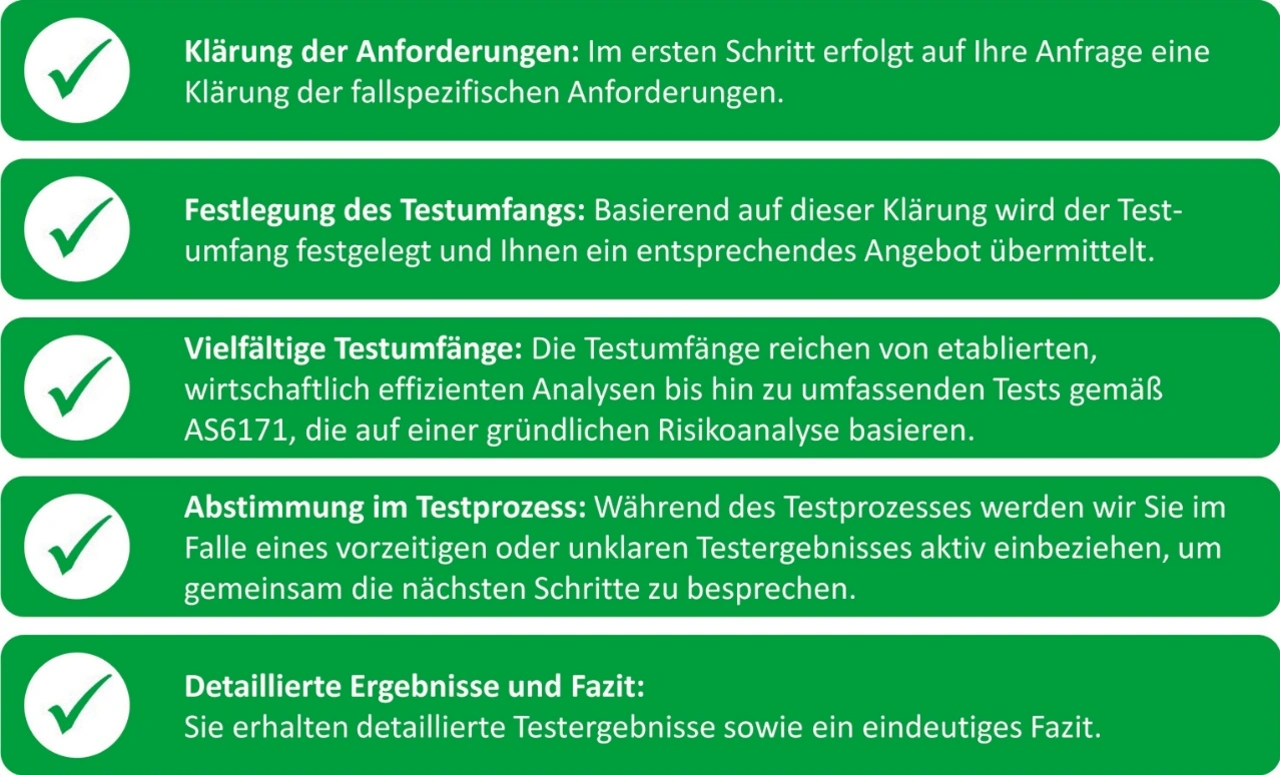 Die AS6171 liefert einen optimalen Rahmen, innerhalb dessen im Labor gearbeitet werden kann. Gleichwohl geht ohne eigene Expertise gar nichts. Was genau getestet werden soll, hängt aber auch von der einzelnen Beschaffungssituation, den jeweiligen Bauelementen und den Anforderungen ab. »Wir testen immer individuell und auf den Kunden zugeschnitten«, sagt Mainz.