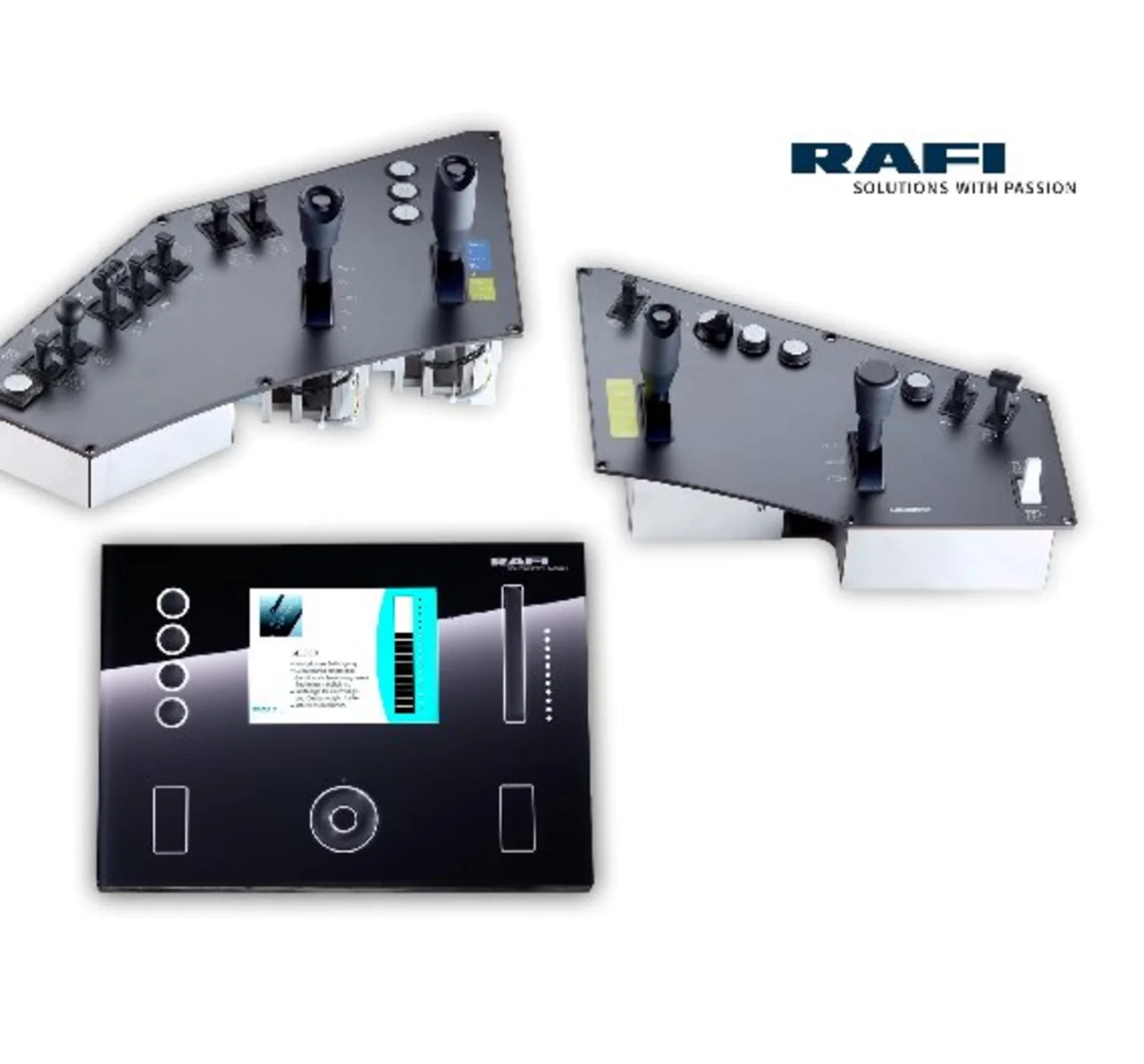 Als Lieferant hochwertiger Fahrstands-Bedienelemente hat Rafi neben diversen elektromechanischen Betätigern auch robuste Touch-Bediengeräte der Glasscape-Baureihe im Produktprogramm für die Verkehrstechnik. Die industrietauglichen Eingabegeräte vereinen Sensor-Eingabefelder und Touchscreen unter einer durchgängig geschlossenen Oberfläche. Dadurch weisen die Eingabegeräte weder verschleißbare Komponenten noch Öffnungen auf, durch die Staub oder Feuchtigkeit ins Innere gelangen kann.