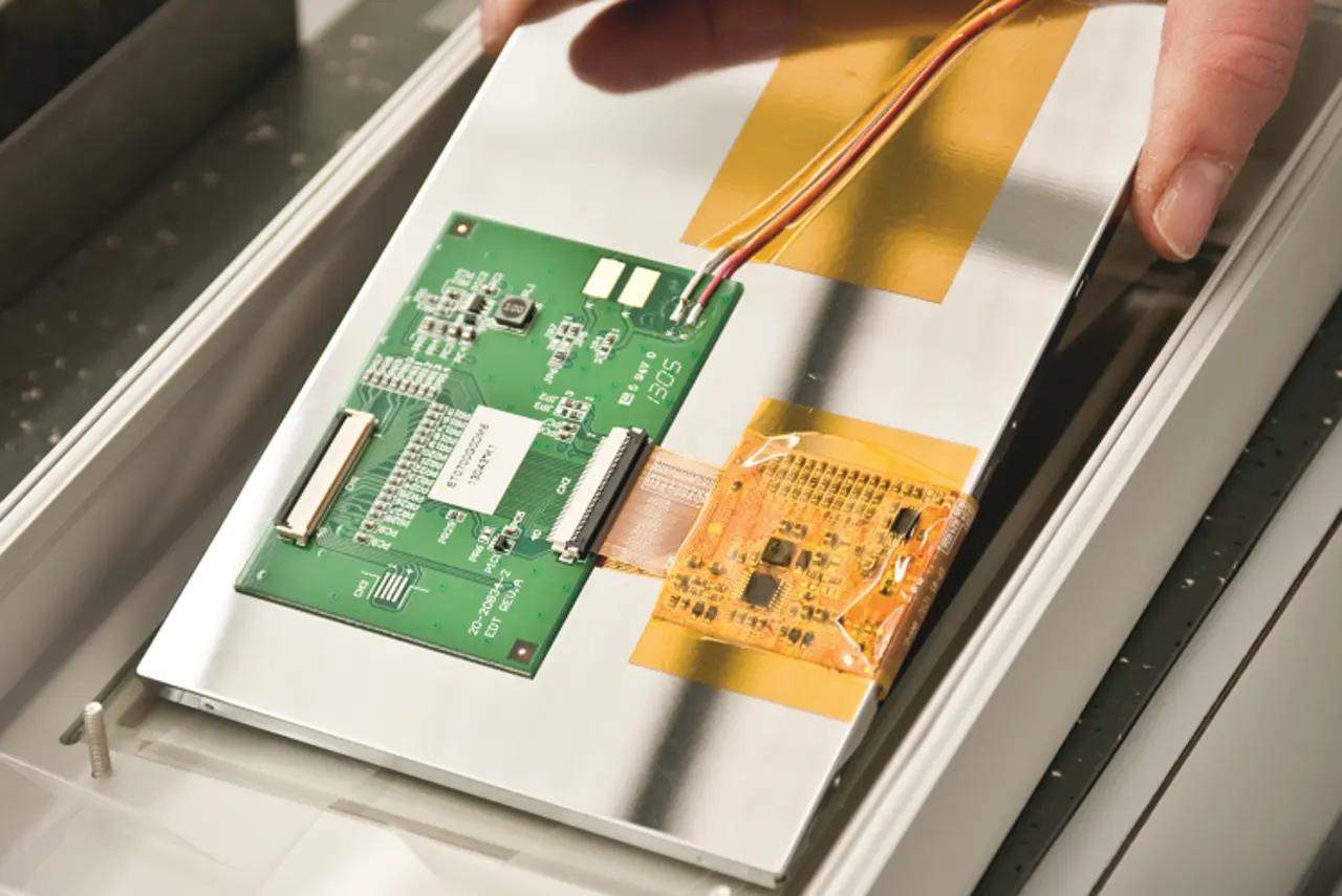 Neben einer Tastatur benötigte das Z Violyne auch einen Farb-Touchscreen. Bopla bereitete die Integration des resistiven Touchdisplays durch eine entsprechende mechanische Bearbeitung des Gehäuses vor und übernahm auch den Einbau. Eine durchgängige Frontfolie schützt das Display vor mechanischen Schäden. Dieser Schutz – erreicht wird Schutzart IP65 – erforderte eine präzise Positionierung des Touchdisplays, um eine optimale Funktion und eine professionelle Optik des Geräts zu gewährleisten. Zudem verhinderte Bopla durch das Auflaminieren einer sogenannten »Anti-Newton-Folie« und winzigen, mit dem bloßen Auge kaum erkennbaren Abstandshaltern eine Anhaftung zwischen Display und Folie, die andernfalls zu sogenannten Newton’schen Ringen führen würde.