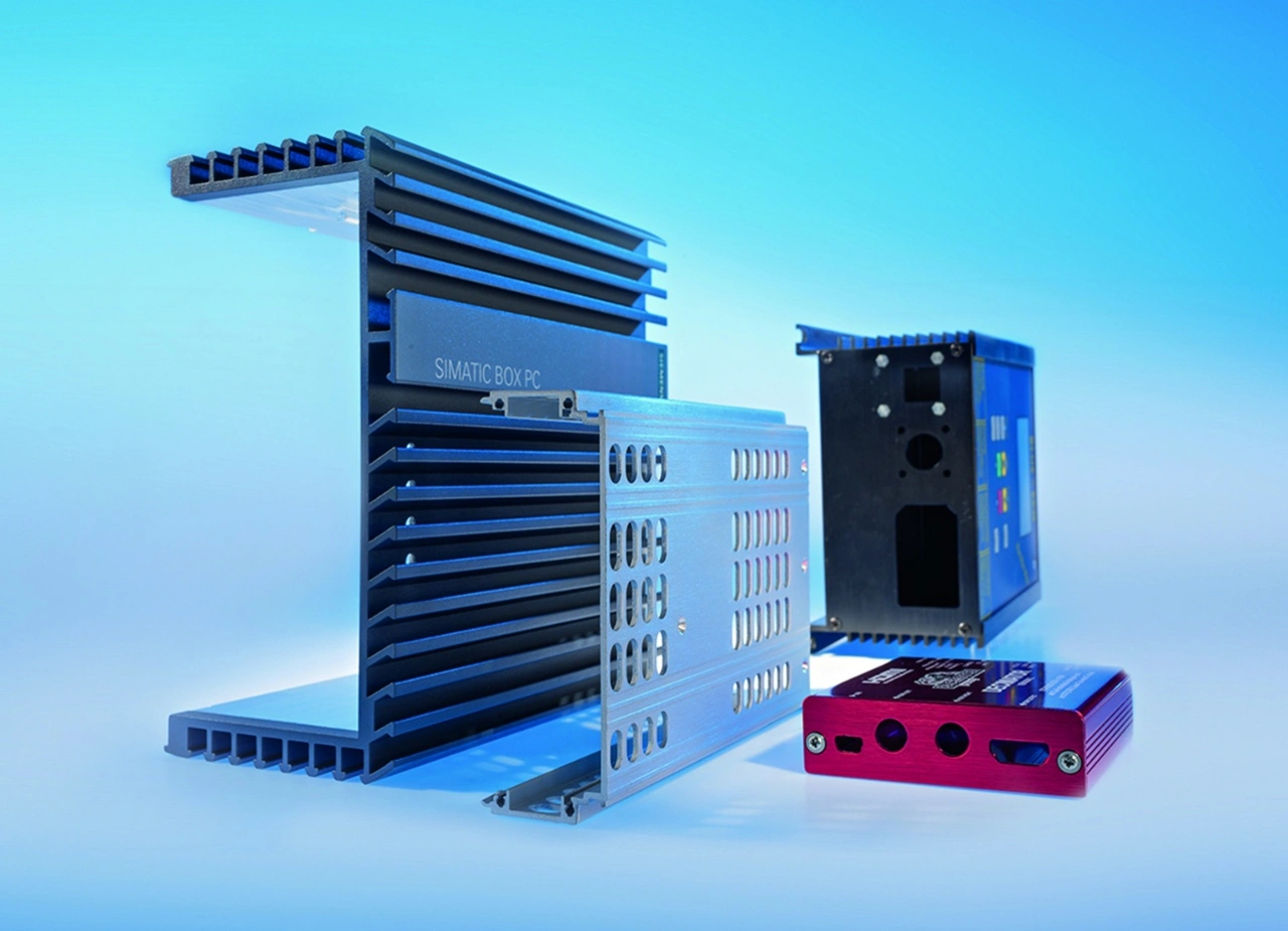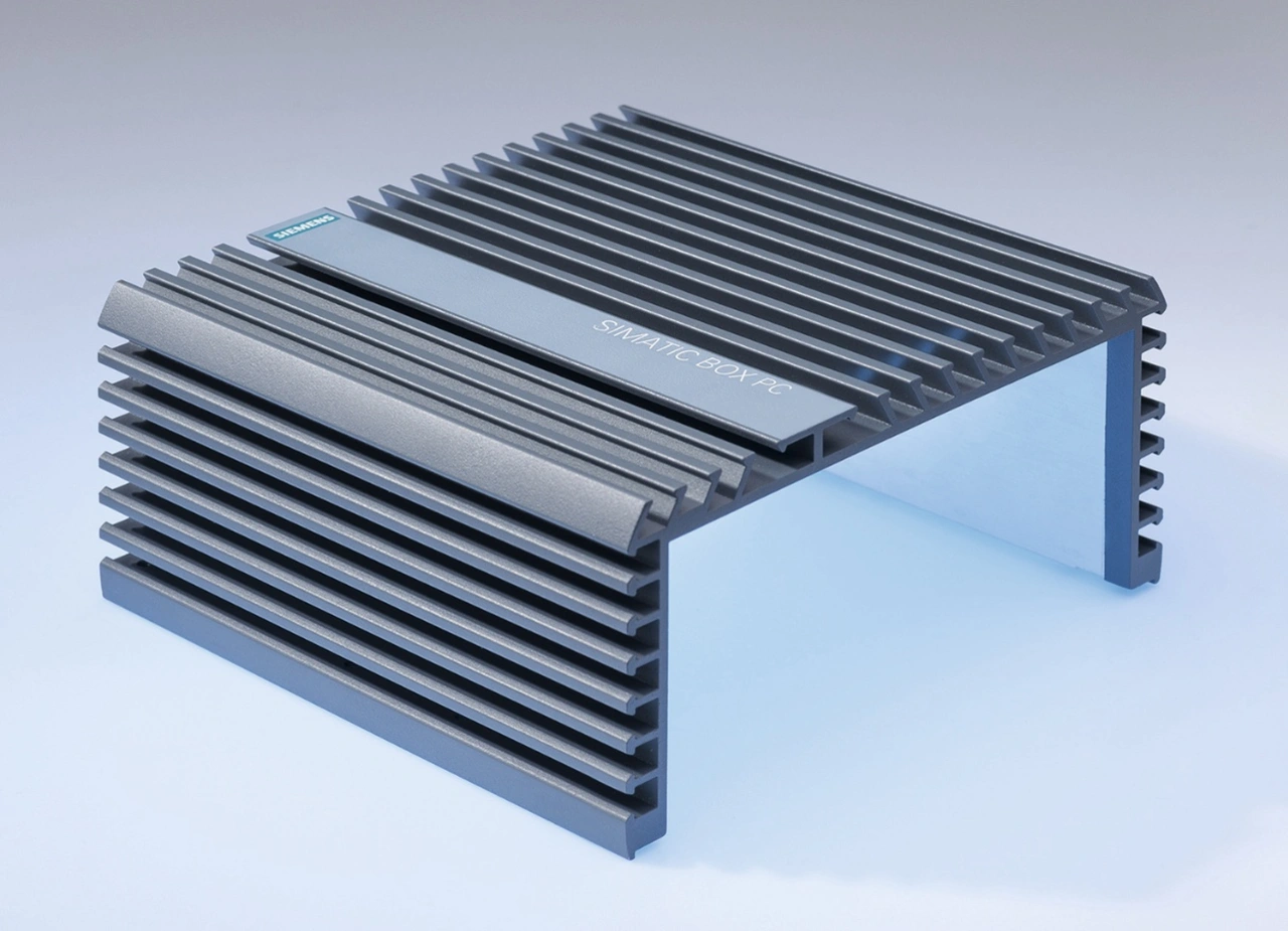 Das Gehäuse der Vision Box wird durch Extrusion gefertigt: Dabei wird Aluminium unter hohem Druck durch eine Form gepresst, anschließend abgekühlt und zugeschnitten. Die Geometrie des Werkzeugs bestimmt das Kühlkörperdesign und damit die Wärmeableitung. Einmal hergestellt, lassen sich mit einer Form große Stückzahlen wirtschaftlich produzieren. CTX bietet zusätzlich Oberflächenbeschichtungen und Beschriftungen an.
